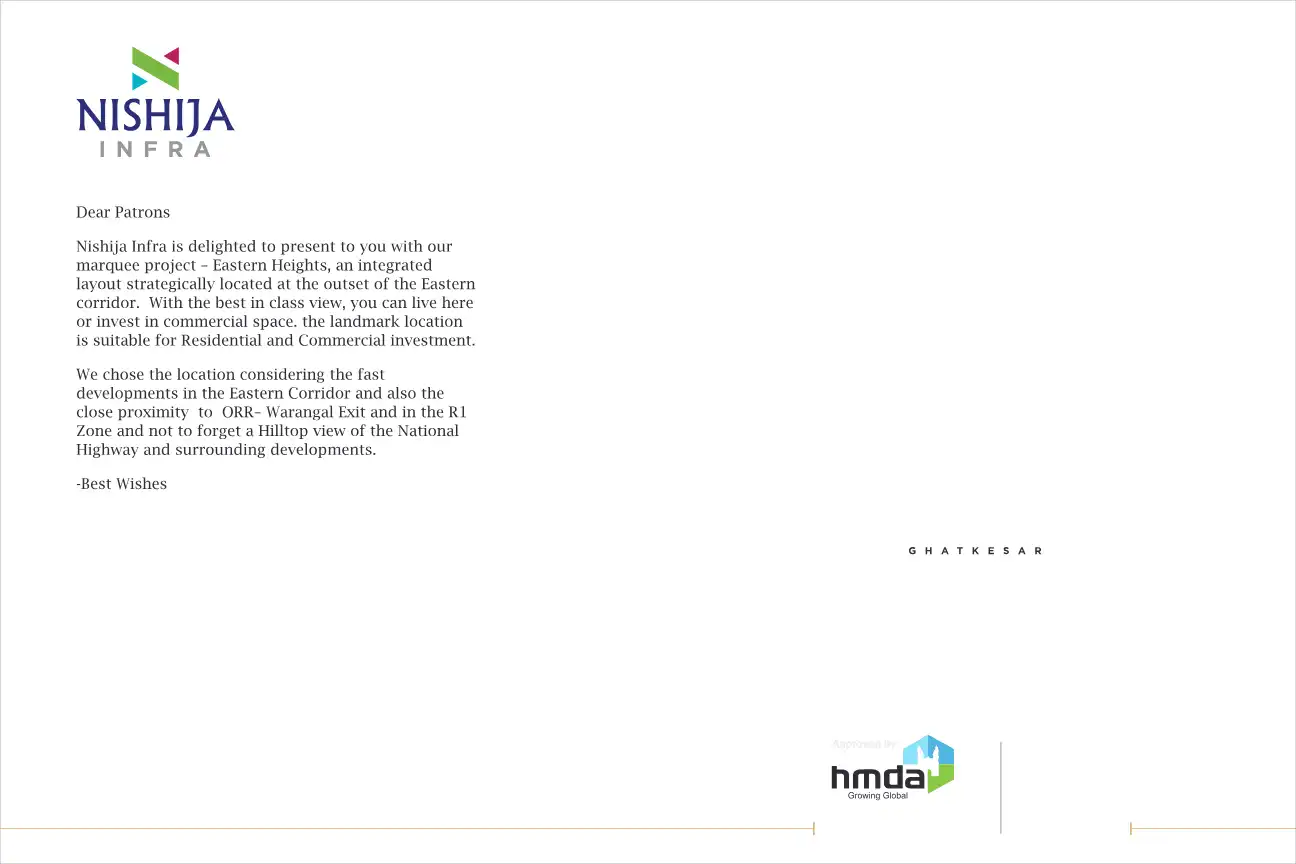 Nishija Infra is delighted to present to you with our marquee project - Eastern Heights, an integrated layout strategically located at the outset of the Eastern corridor. With the best in class view, you can live here or invest in commercial space. t...