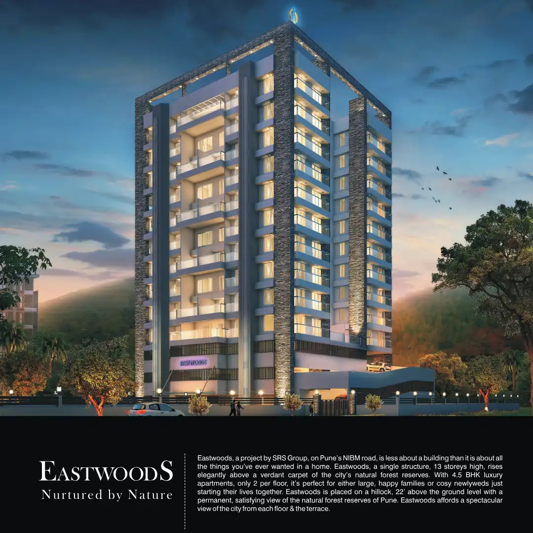 Eastwoods, a project by SRS Group, on Pune's NIBM road, is less about a building than it is about all the things you've ever wanted in a home. Eastwoods, a single structure, 13 storeys high, rises elegantly above a verdant carpet of the city's natura...