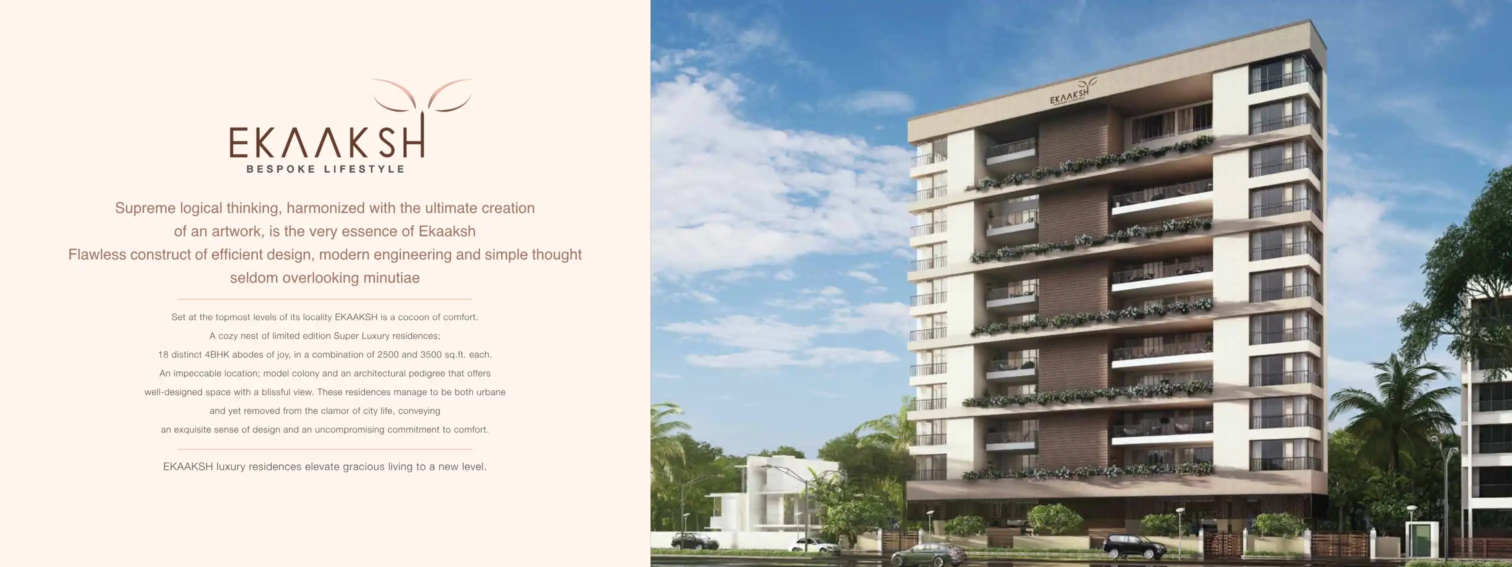 Supreme logical thinking, harmonized with the ultimate creation of an artwork, is the very essence of Ekaaksh. Flawless construct of efficient design, modern engineering and simple thought seldom overlooking minutiae.