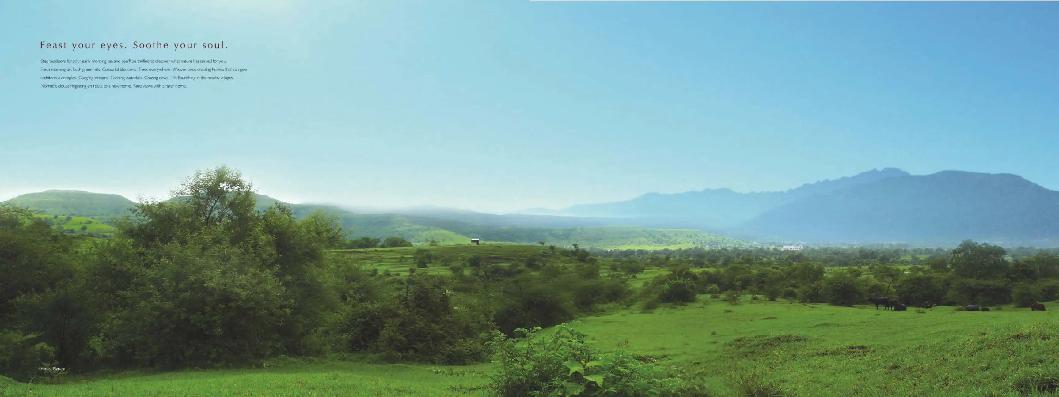 A collection of 3 & 4 BHK lifestyle villas strategically located near one of India's most progressive cities, Pune. Nestled on the slope of lush green hills, VIVA seamlessly blends life's finest pleasures with breathtaking natural surroundings.