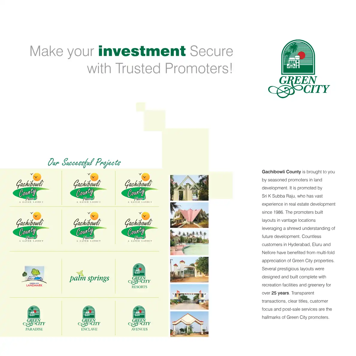 Gachibowli County Phase-7 is a mega layout that realize dream lifestyles. At the hands of experienced Promoters, the land transforms into a dream scape that appeals to all your aspirations. Pollution-free environment is the first priority. Flawless B...