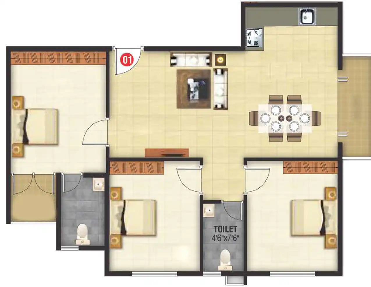 - 3 BHK Flats for Sale near Ganesh Residency