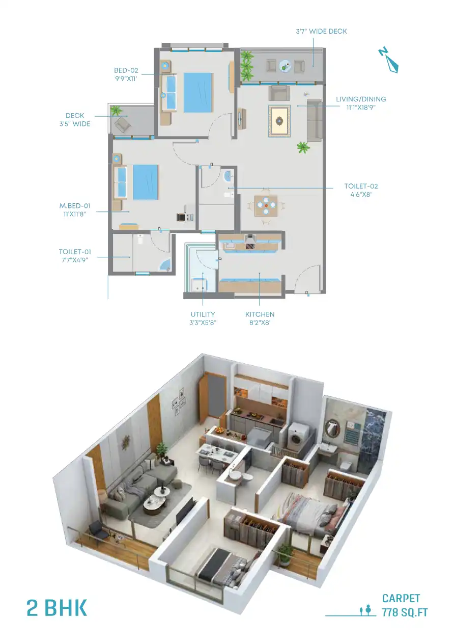 - 2 BHK Flats for Sale near Geras Garden in The Sky