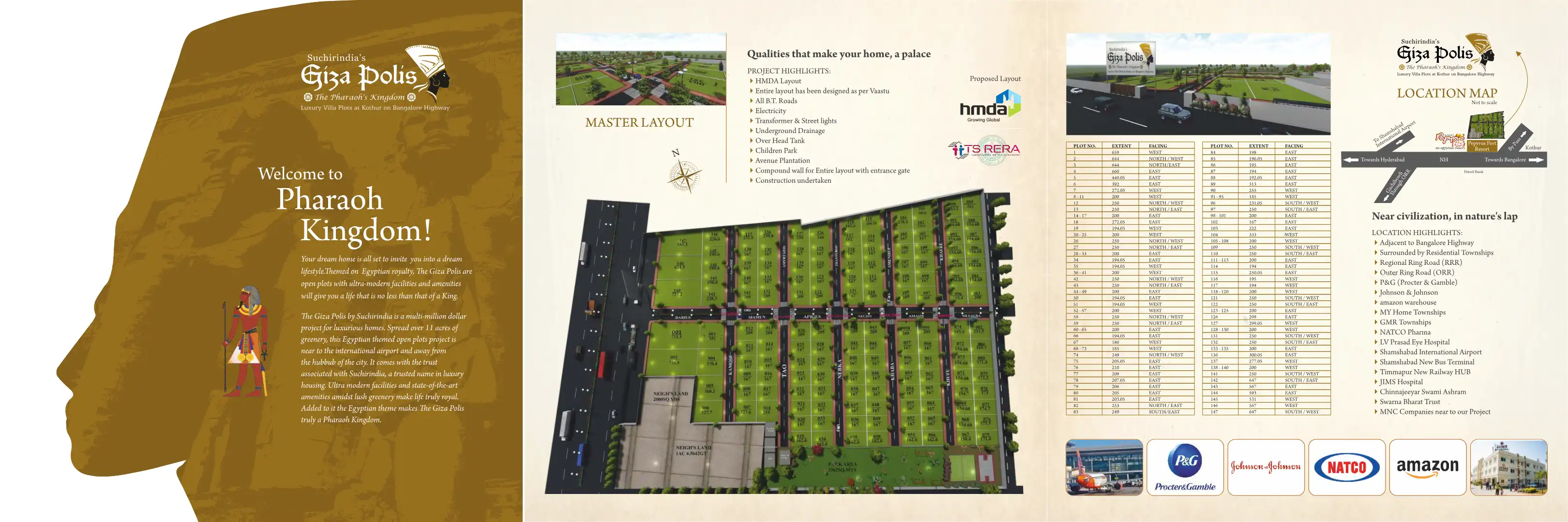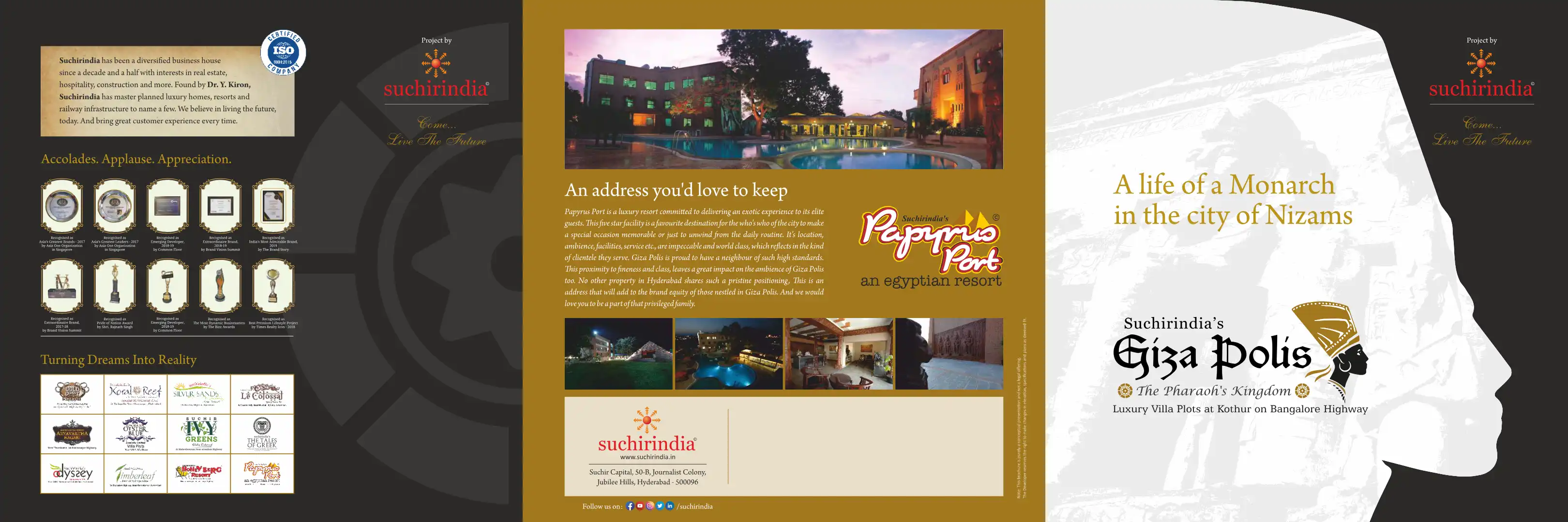 The Giza Polis by Suchirindia is a multi-million dollar project for luxurious homes. Spread over 11 acres of greenery, this Egyptian themed open plots project is near to the international airport and away from the hubbub of the city.