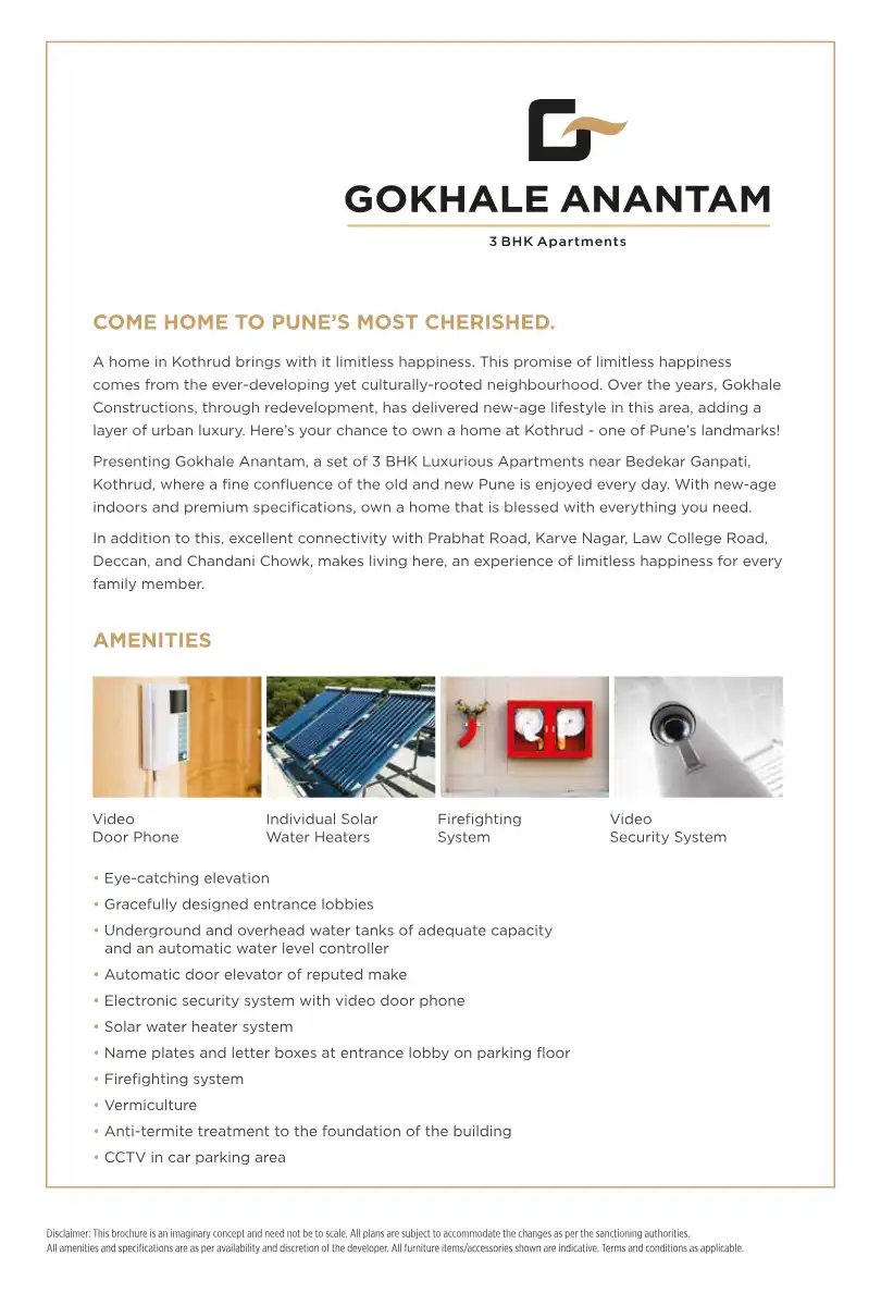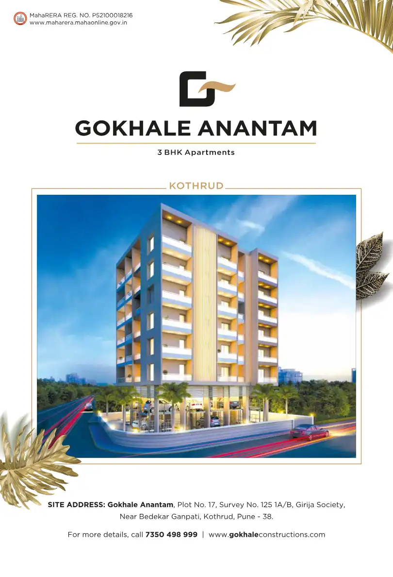 Presenting Gokhale Anantam, a set of 3 BHK Luxurious Apartments near Bedekar Ganpati, Kothrud, where a fine confluence of the old and new Pune is enjoyed every day. With new-age indoors and premium specifications, own a home that is blessed with ever...