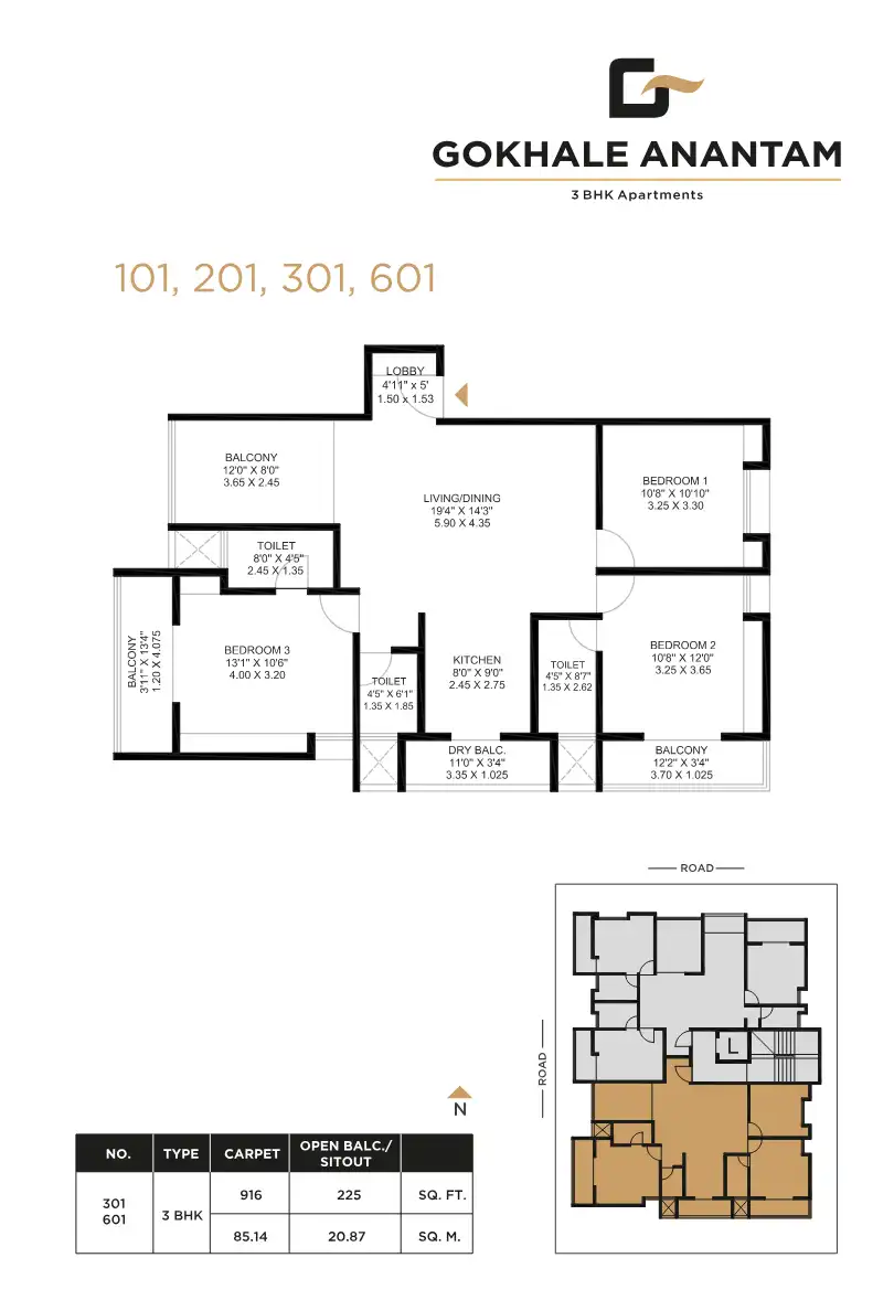 - 3 BHK Flats for Sale near Gokhale Anantam