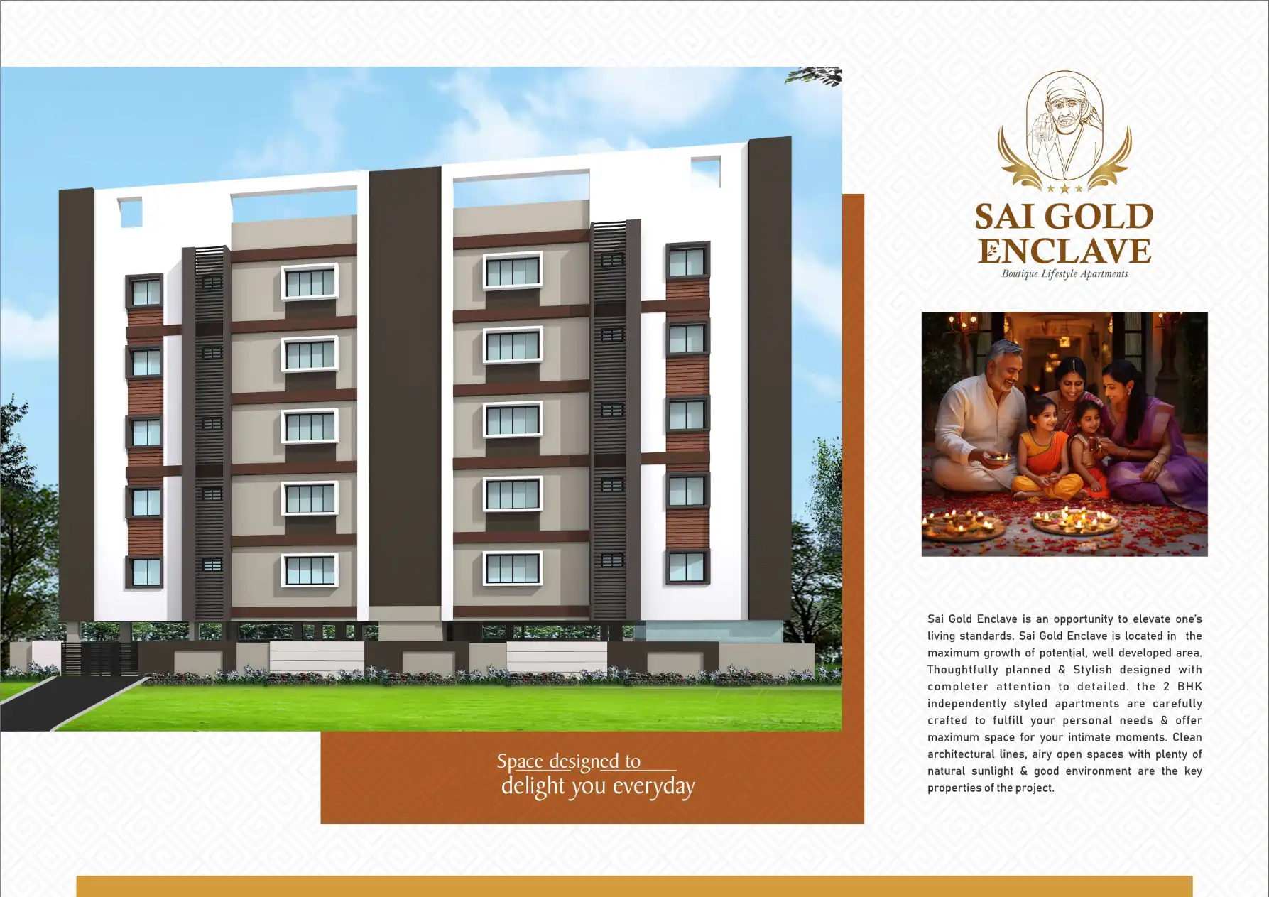 Sai Gold Enclave is an opportunity to elevate one's living standards. Sai Gold Enclave is located in the maximum growth of potential, well developed area. Thoughtfully planned & Stylish designed with complete attention to detailed. the 2 BHK independ...