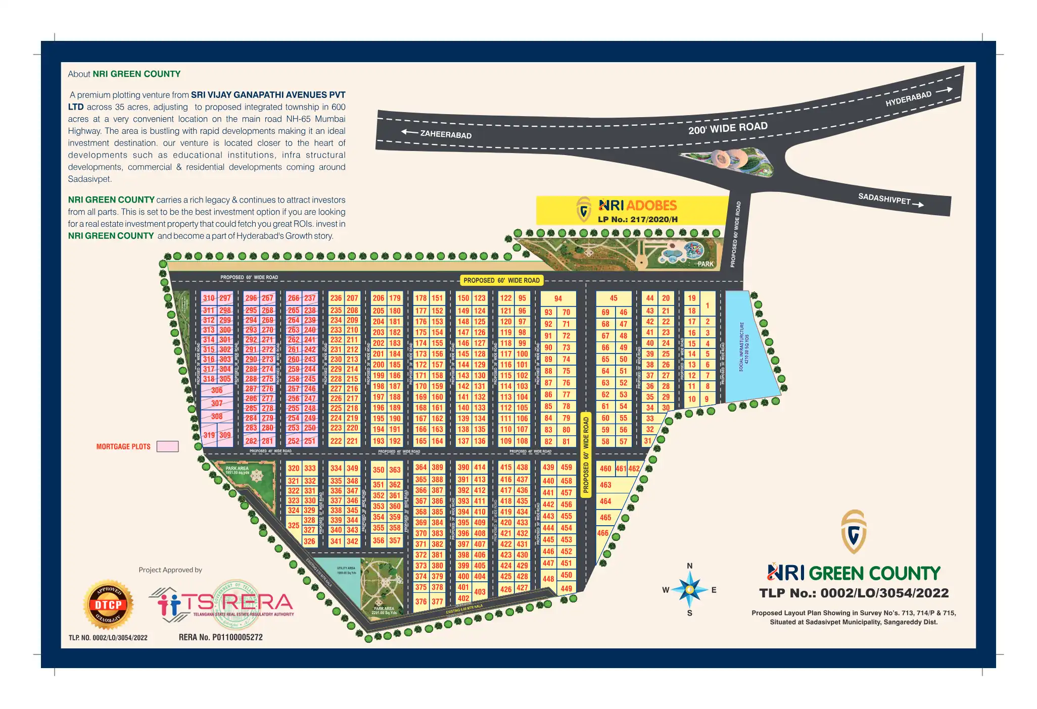 A premium plotting venture from SRI VIJAY GANAPATHI AVENUES PVT LTD across 35 acres, adjusting to proposed integrated township in 600 acres at a very convenient location on the main road NH-65 Mumbai Highway.