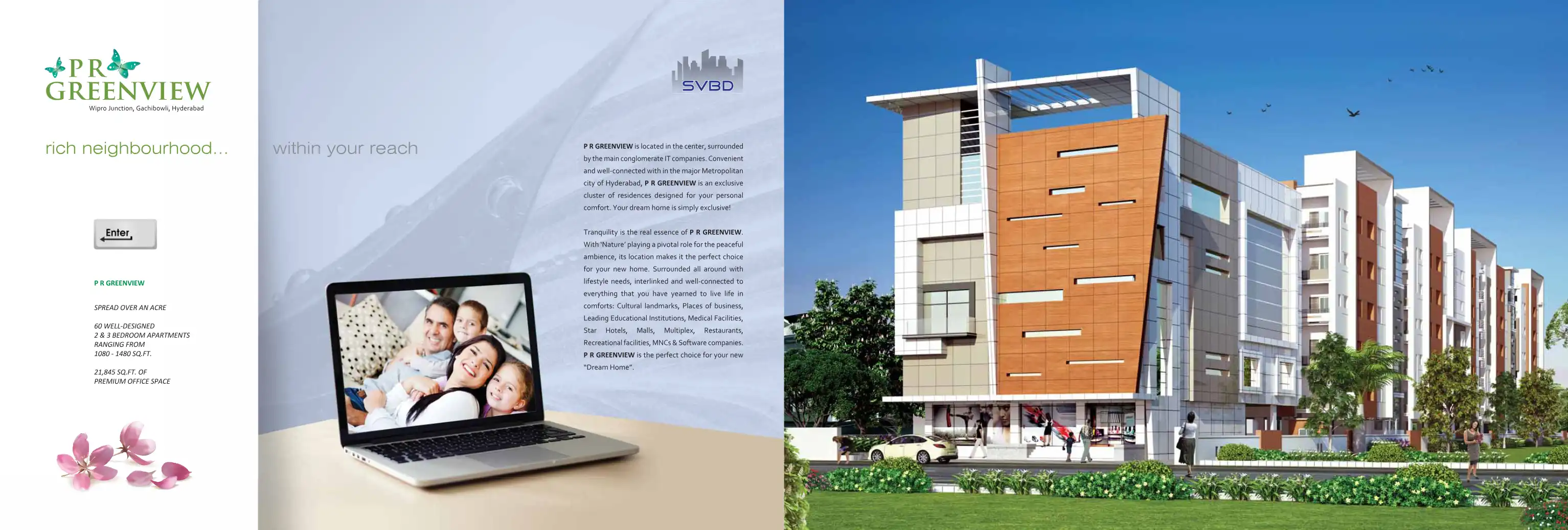 P R GREENVIEW is located in the center, surrounded by the main conglomerate IT companies. Convenient and well-connected with in the major Metropolitan city of Hyderabad, P R GREENVIEW is an exclusive cluster of residences designed for your personal c...