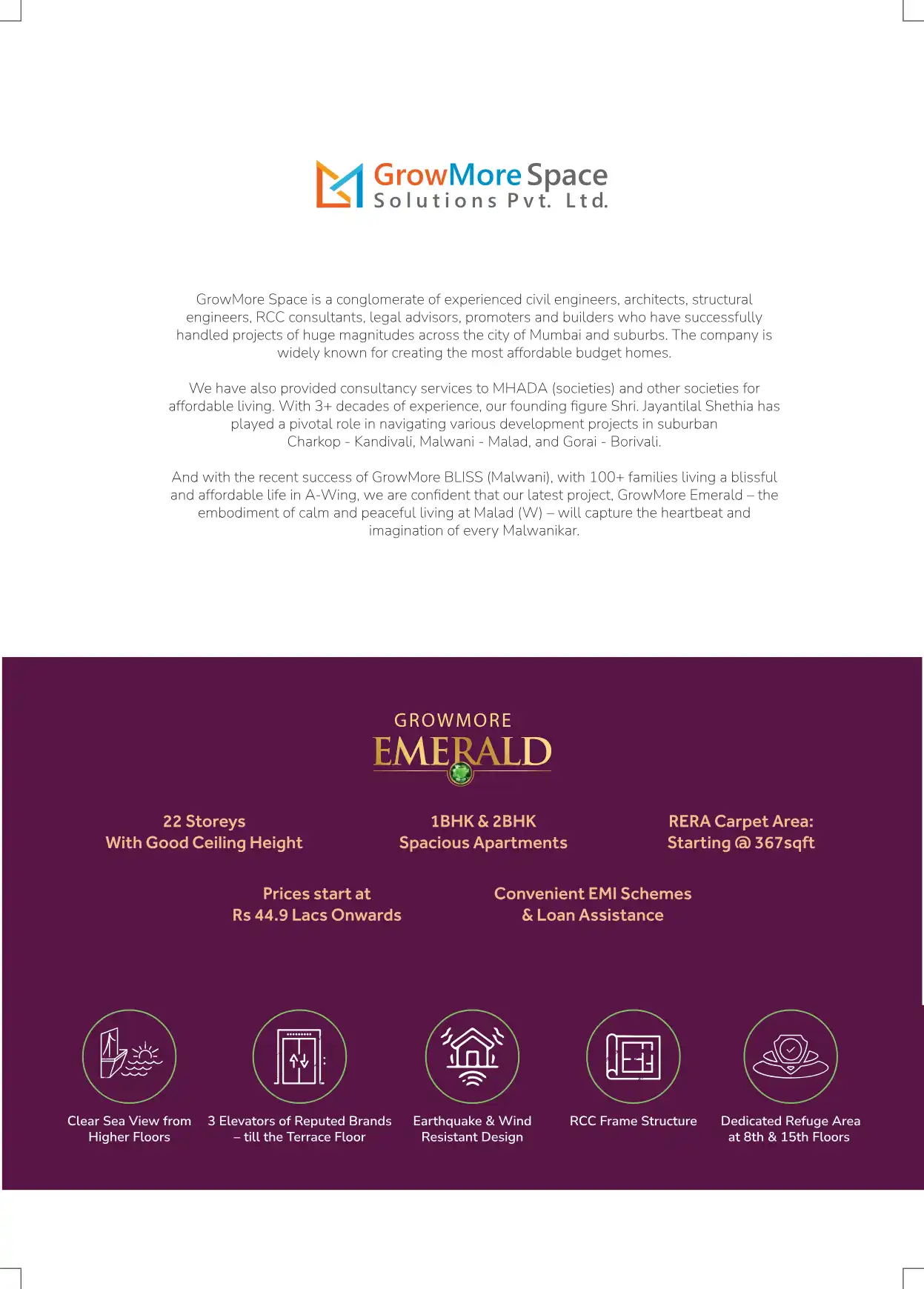 GrowMore Emerald is beautifully nestled at a point that offers both: a doorway into city life full of amenities, and an entryway into lush greens, quietness, and clean air. At Emerald, you can choose from a range of reasonably priced, lavish 1BHK or ...