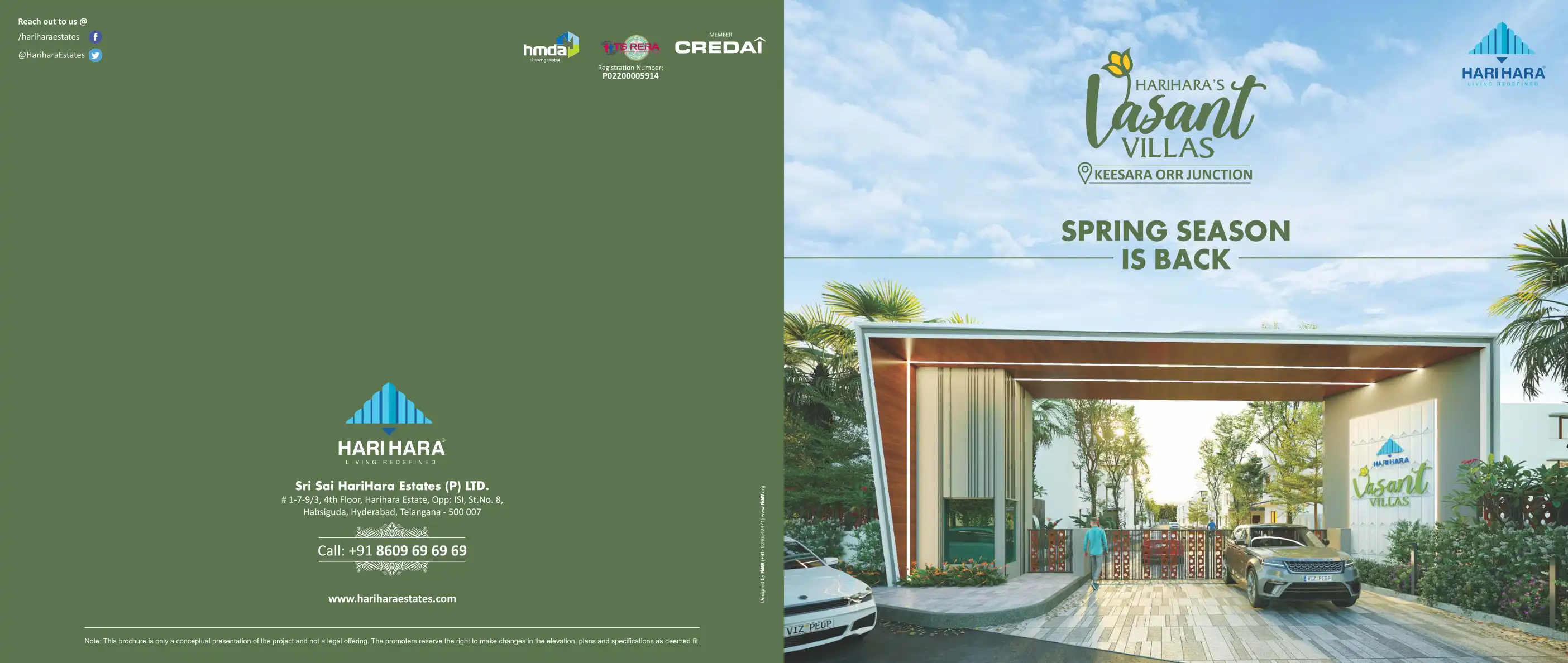 Descend to an exquisite enclave of homes, the likes of which this part of Hyderabad has never seen before. 69 one-of-its-kind, villas set in 6 acres, called 'Harihara's Vasant Villas'. A luxury and serene gated villa venture from the house of 'Hariha...