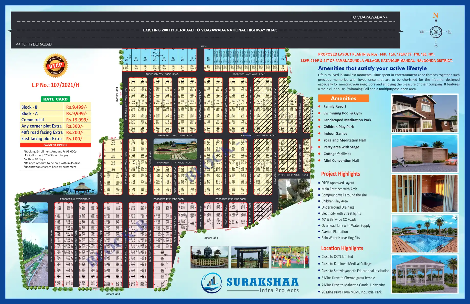 For those interested in plotted developments, Gem Infinity Estates LLP offers Sri Lakshmi Avenue, providing plots with amenities like swimming and gym. Additionally, SURAKSHAA Infra Projects presents HI-WAY COLONY, a DTCP approved plotted development in L.B. Nagar, offering various amenities and possession from November 2024.