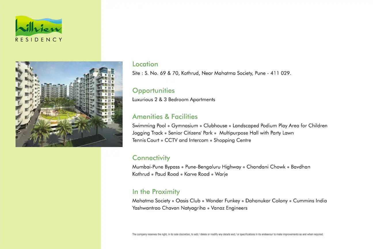 - 2 BHK Flats for Sale near Hillview Residency