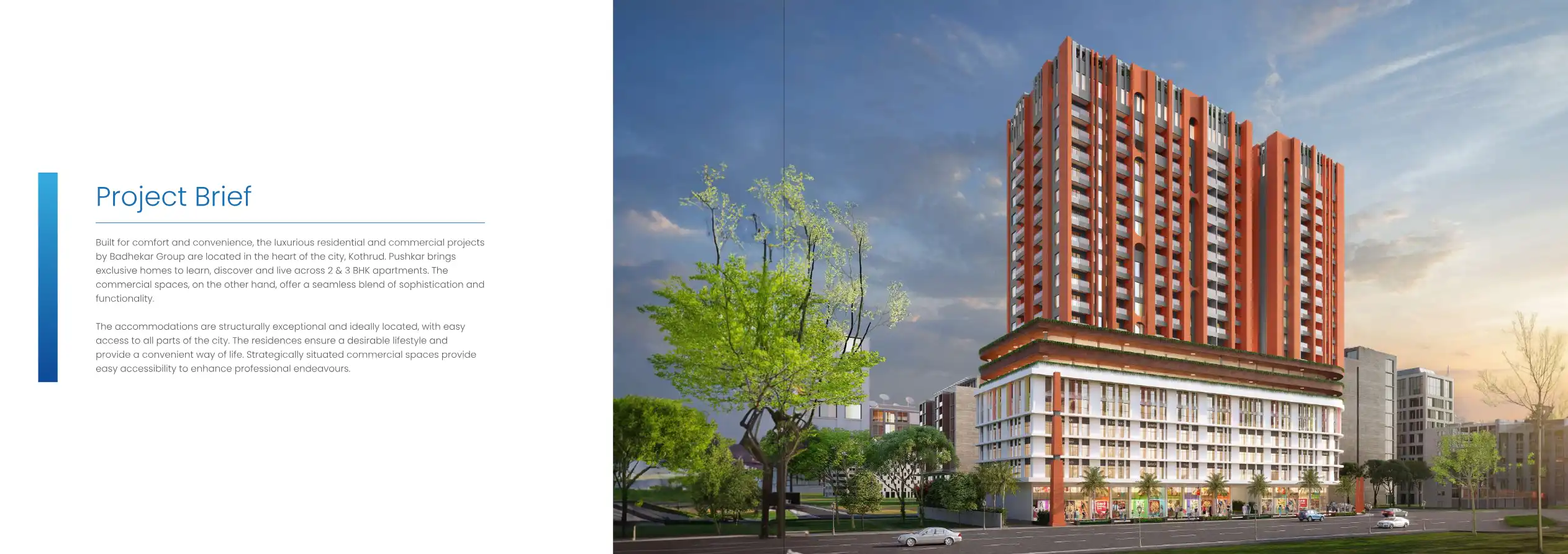 The luxurious residential and commercial projects by Badhekar Group are located in the heart of the city, Kothrud. Pushkar brings exclusive homes to learn, discover and live across 2 & 3 BHK apartments. The commercial spaces, on the other hand, offer...