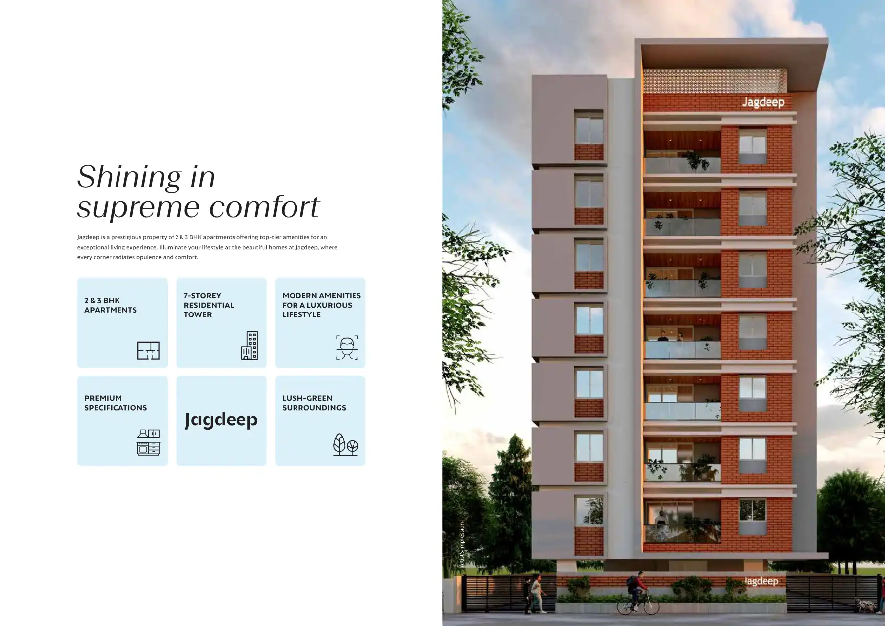 Jagdeep is a prestigious property of 2 & 3 BHK apartments offering top-tier amenities for an exceptional living experience. Illuminate your lifestyle at the beautiful homes at Jagdeep, where every corner radiates opulence and comfort.