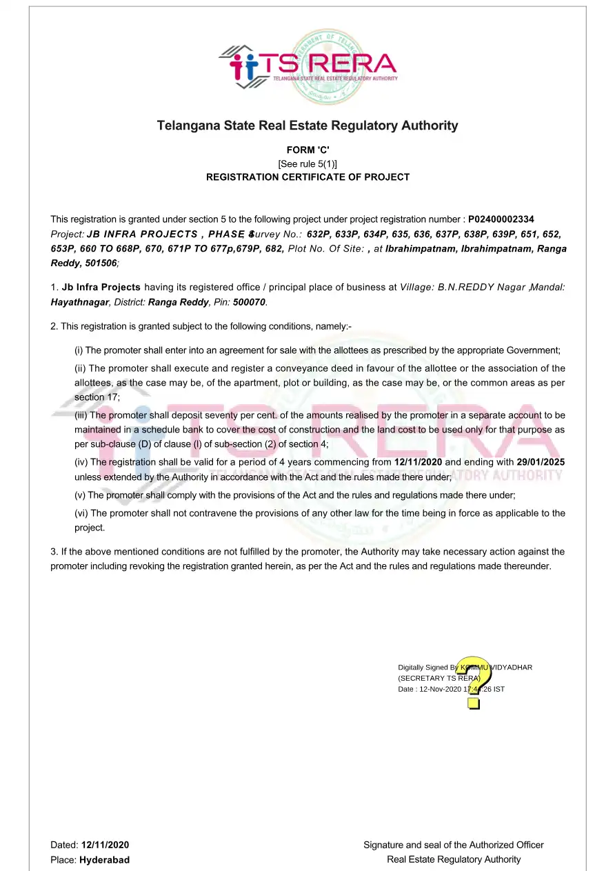 This registration is granted under section 5 to the following project under project registration number: P02400002334