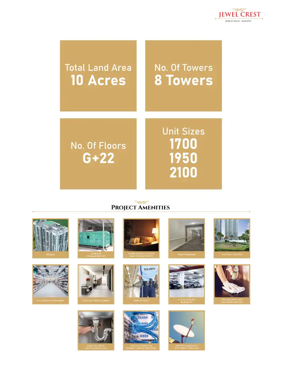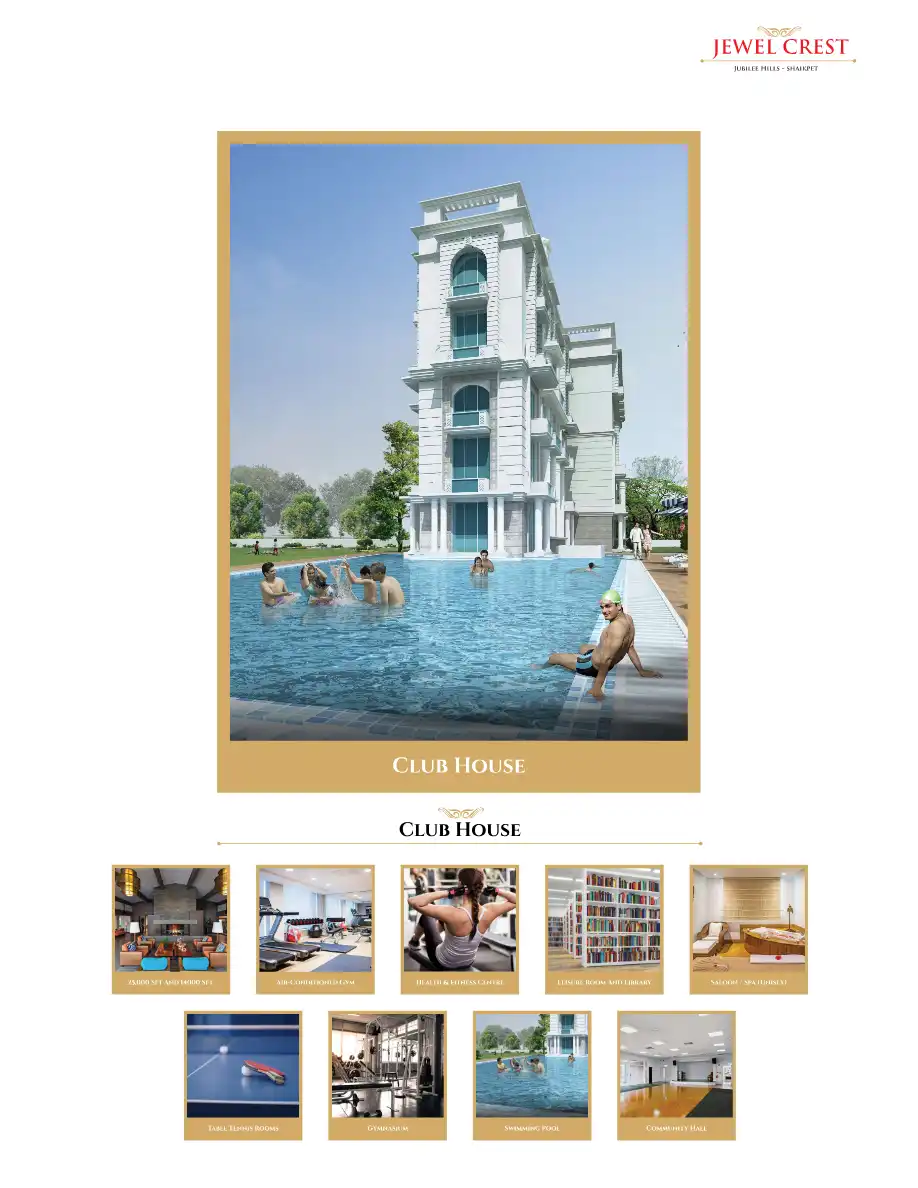 A Beautifully Designed Project To Live Life In Luxury For A Few Privileged Families. Two Clubhouses With Rich Ambience. Located At Jubilee Hills, Shaikpet, A Prime Location Which Is Close To Everything You Can Imagine