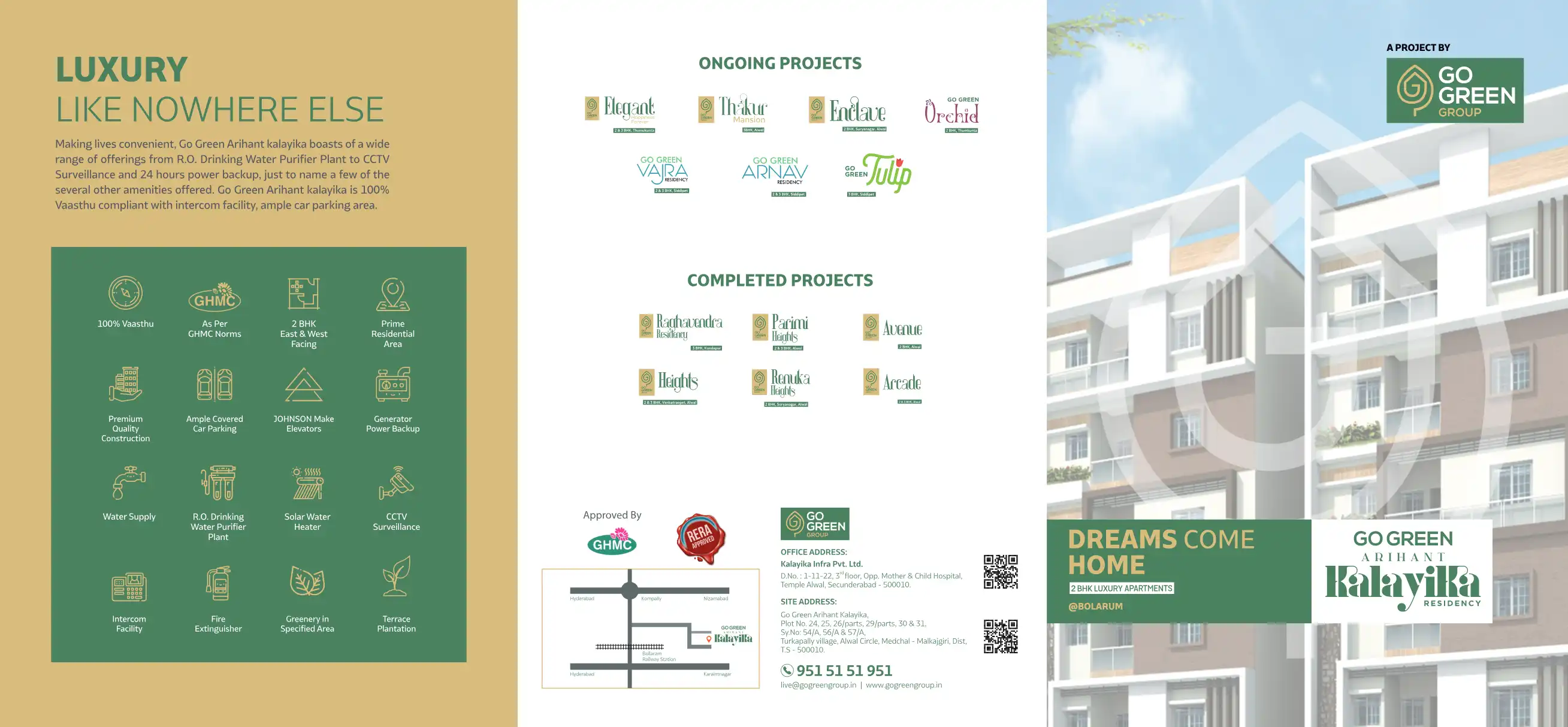 Go Green Arihant kalayika is a project in Bolarum for your comfort and luxury with world-class amenities. Nestled within a blanket of greenery, the apartments are designed in detail to offer you and your family the best of comfortable living. At Go G...