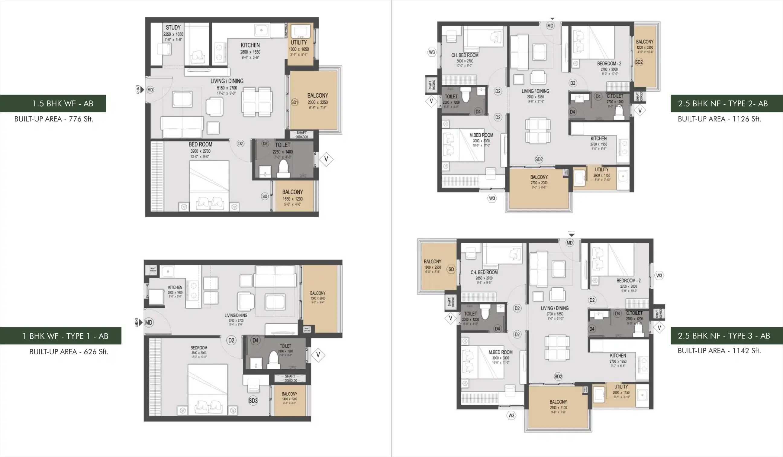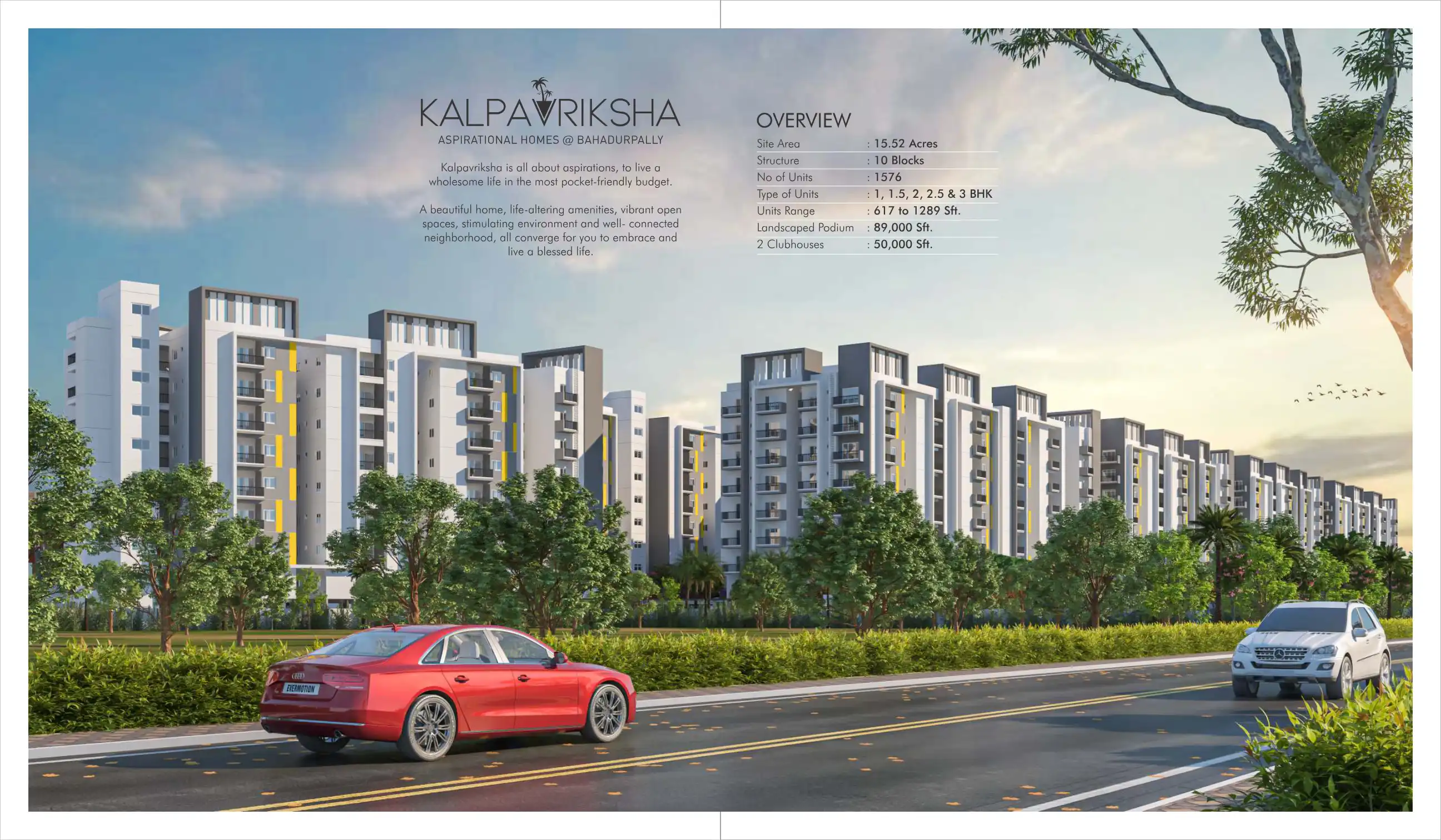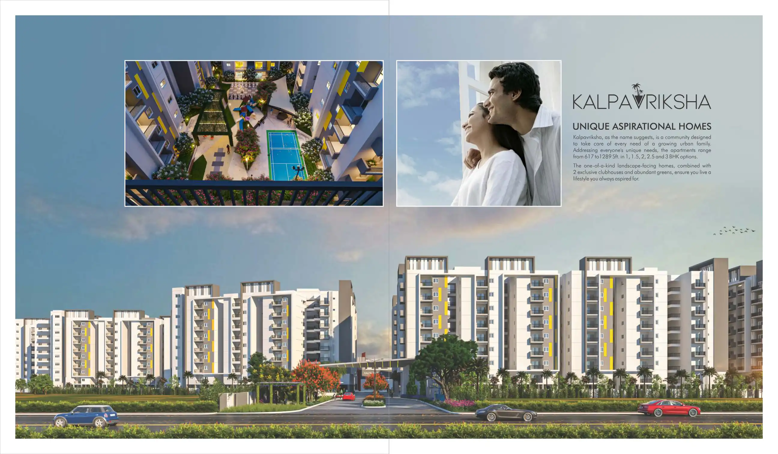 Kalpavriksha, as the name suggests, is a community designed to take care of every need of a growing urban family. Addressing everyone's unique needs, the apartments range from 617 to 1289 Sft. in 1, 1.5, 2, 2.5 and 3 BHK options.