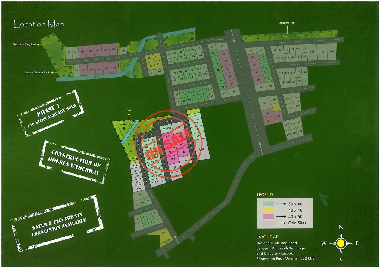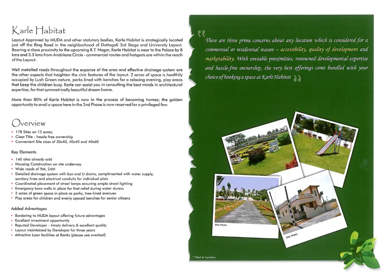 Karle Habitat is strategically located just off the Ring Road in the neighborhood of Dattagali 3rd Stage and University Layout. Layout Approved by MUDA.
