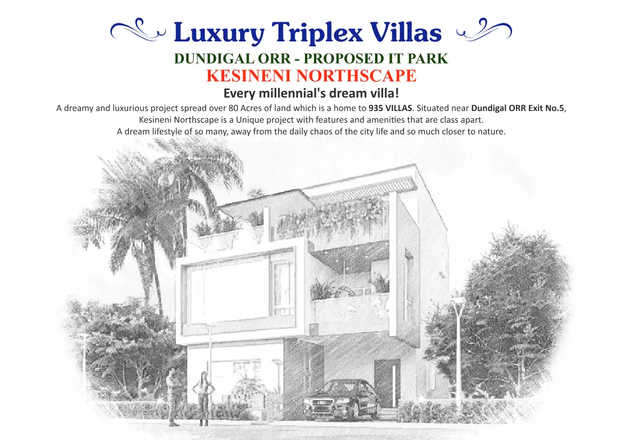 A dreamy and luxurious project spread over 80 Acres of land which is a home to 935 VILLAS. Situated near Dundigal ORR Exit No.5, Kesineni Northscape is a Unique project with features and amenities that are class apart. A dream lifestyle of so many, a...