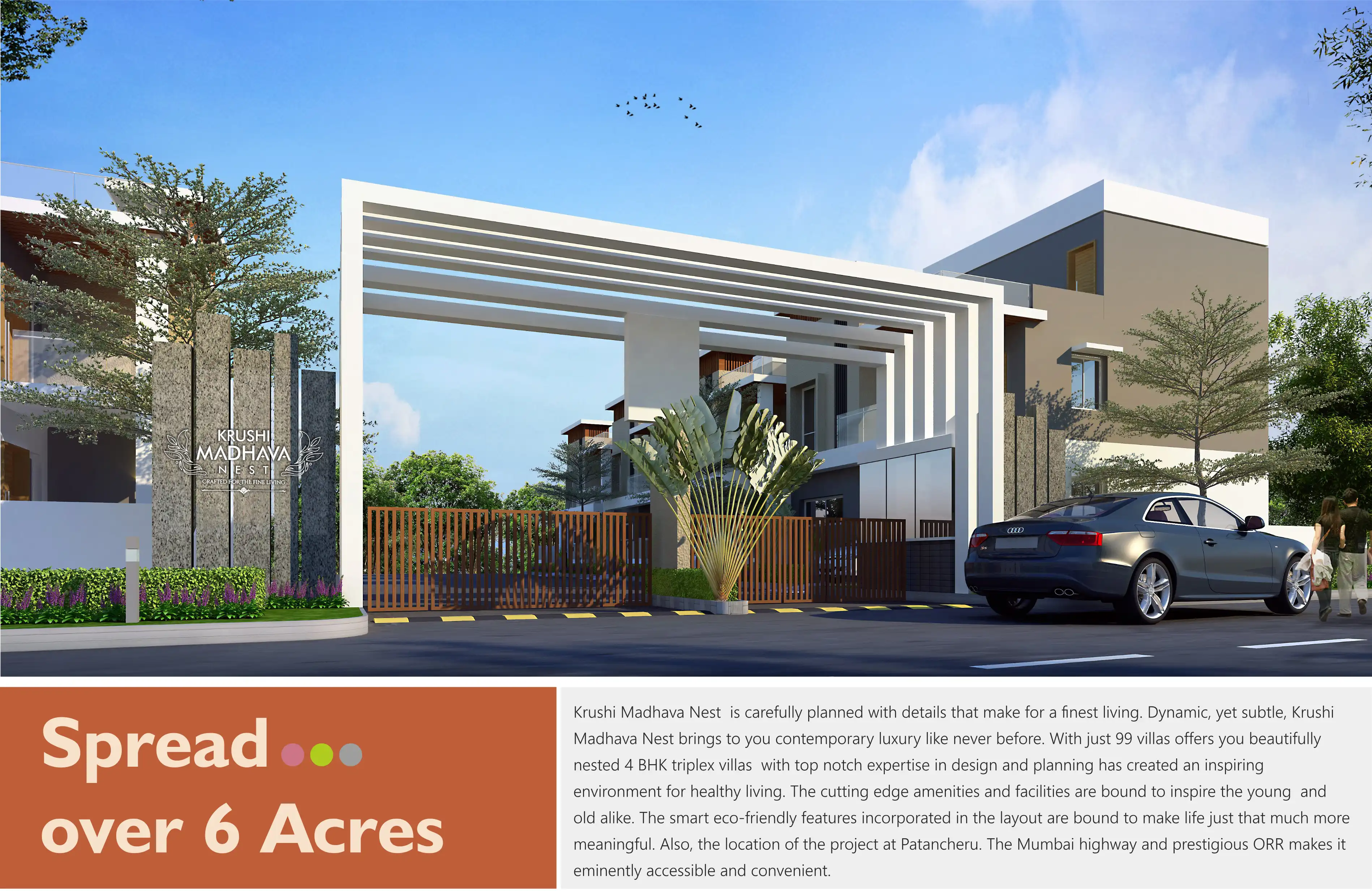 A premium gated community of 4 BHK villas at Patancheru. With just 99 villas it offers 4 BHK triplex villas.