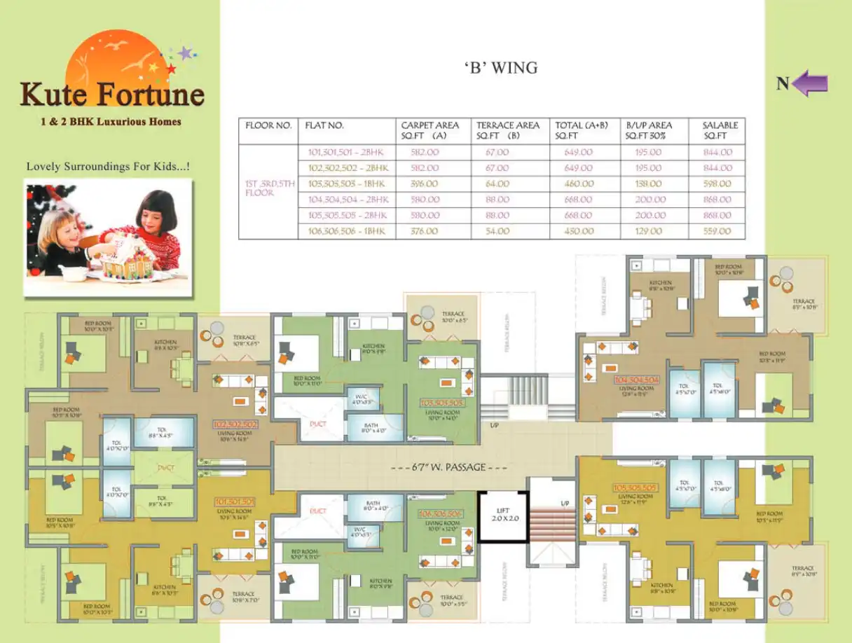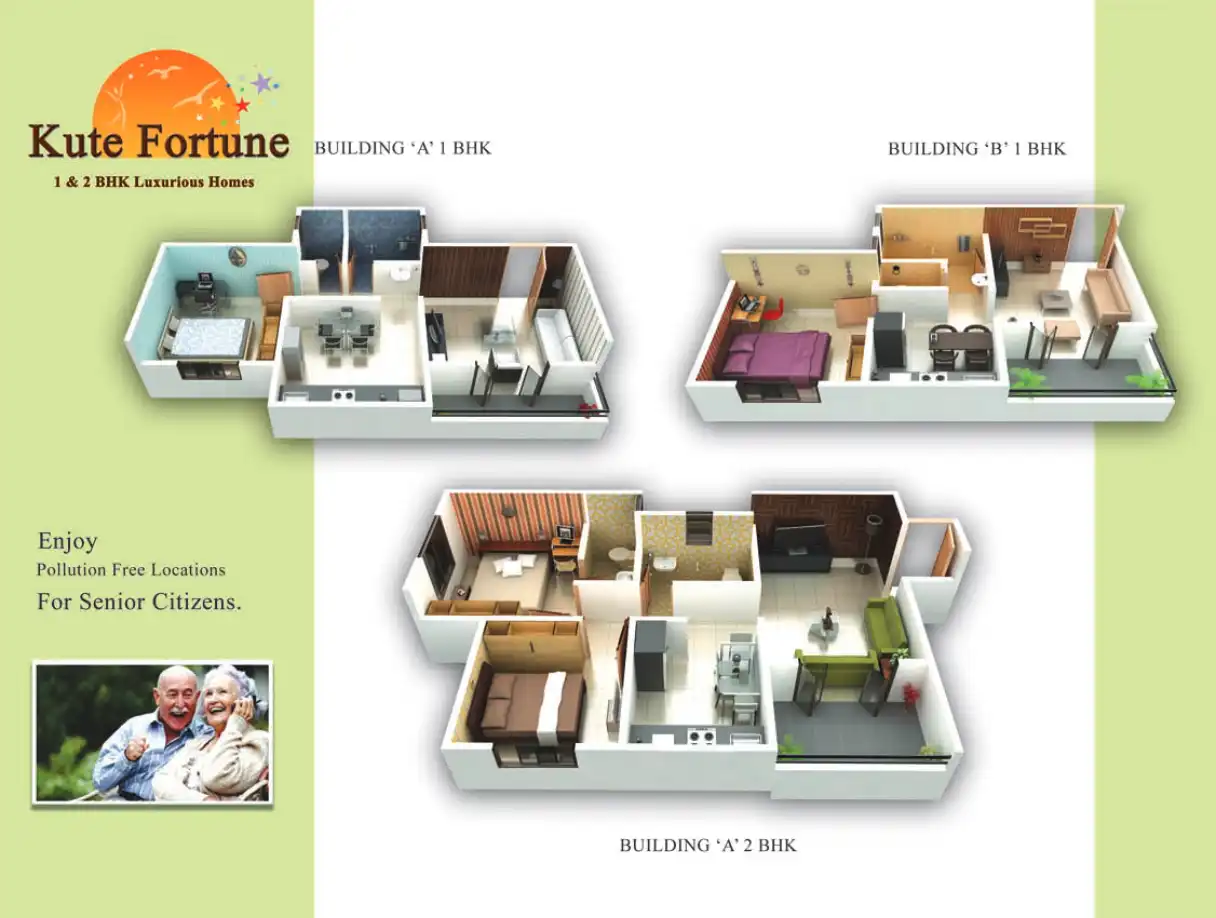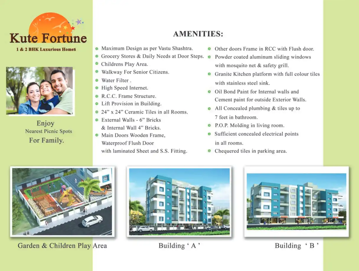 Kute Fortune offers luxurious 1 & 2 BHK homes with amenities like children's play area, high-speed internet, and fire-fighting system.