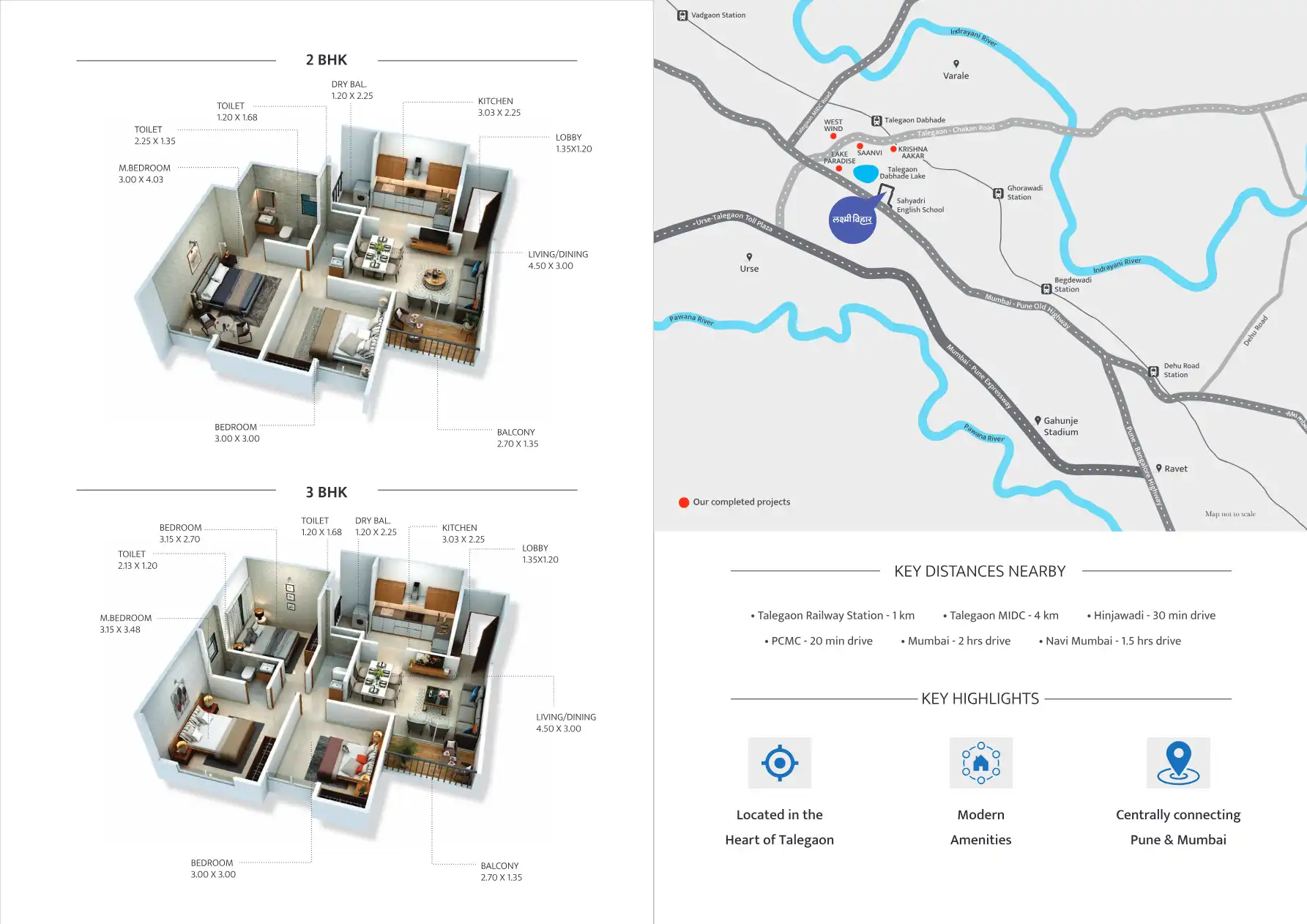 Talegaon features several notable residential projects catering to various budgets. Prominent developments include Namrata Group's AIKONIC and Namrata Sarvam, offering 1, 2, and 3 BHK flats with modern amenities. Other projects like Bhagat Crystal by Bhagat Builders and NS Pride by Goodwill also provide quality living spaces, contributing to the area's growing residential landscape.