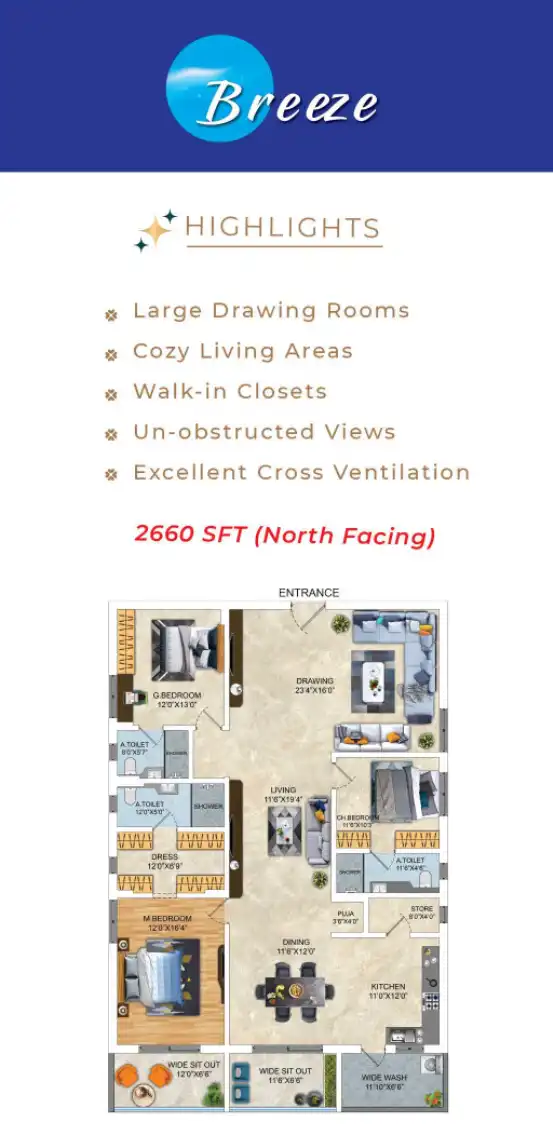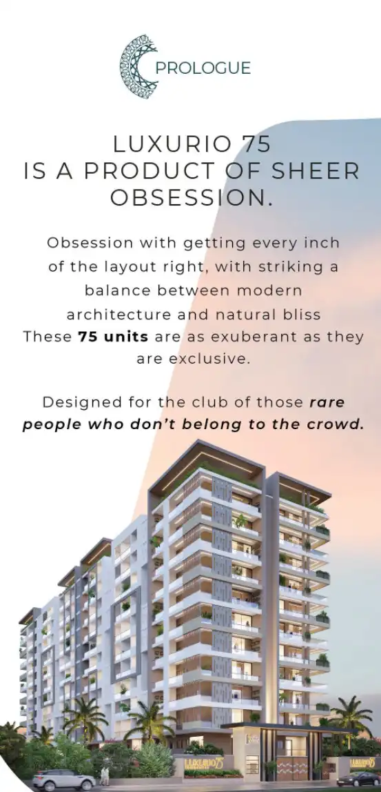 Luxurio 75 is a residential project in Hyderabad. It offers 3 & 4 BHK apartments with units as exuberant and exclusive. The project has 75 Units on 1 Acre 4 Gunta area with 11 Floors.