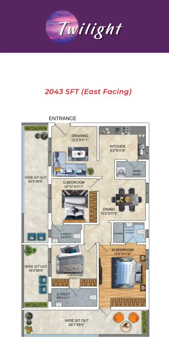 - 3 BHK Flats for Sale near Luxurio 75 Residences