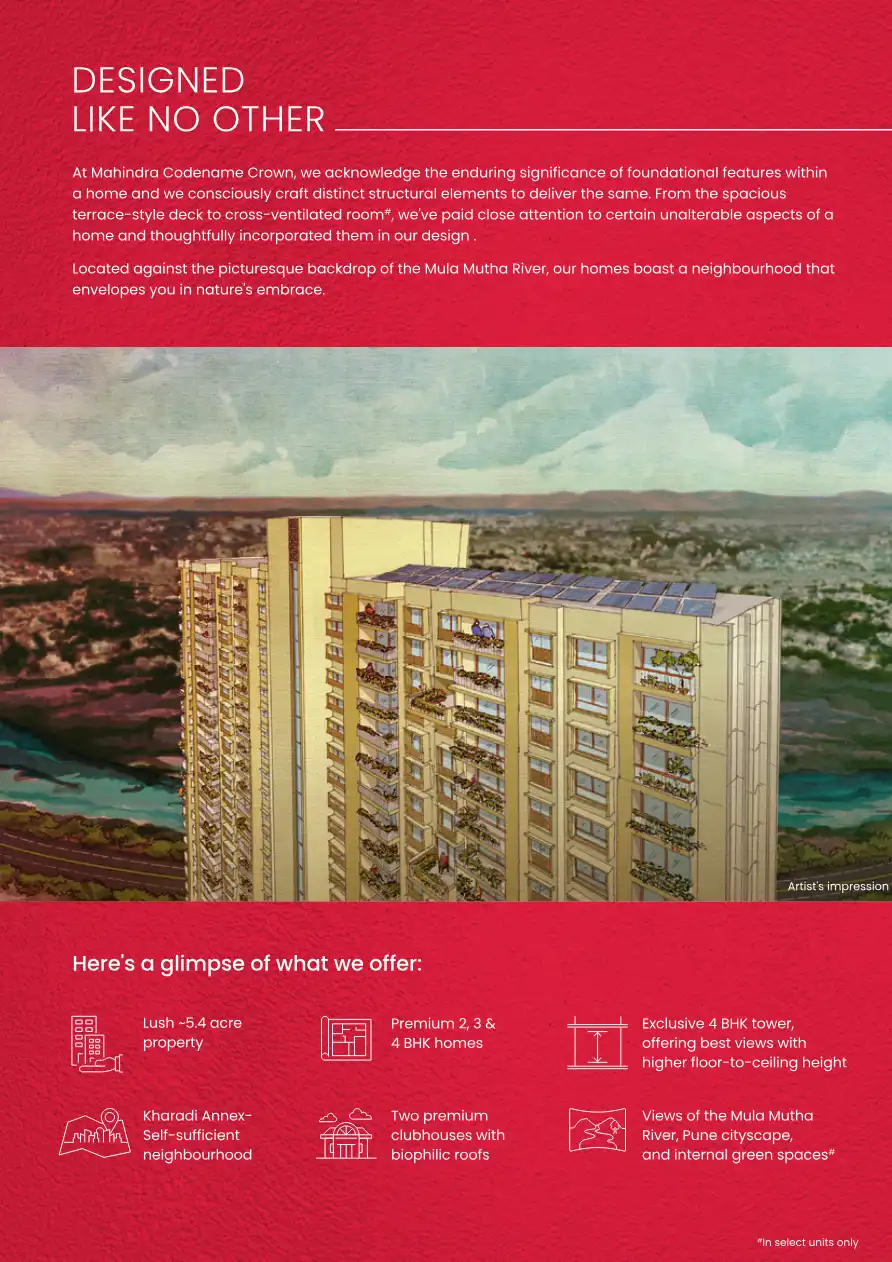 Understanding the unalterable nature of one's home, Mahindra Codename Crown has thoughtfully designed every residence from the very beginning. By integrating essential functional amenities into the homes, we aim to ensure that you and your family can...
