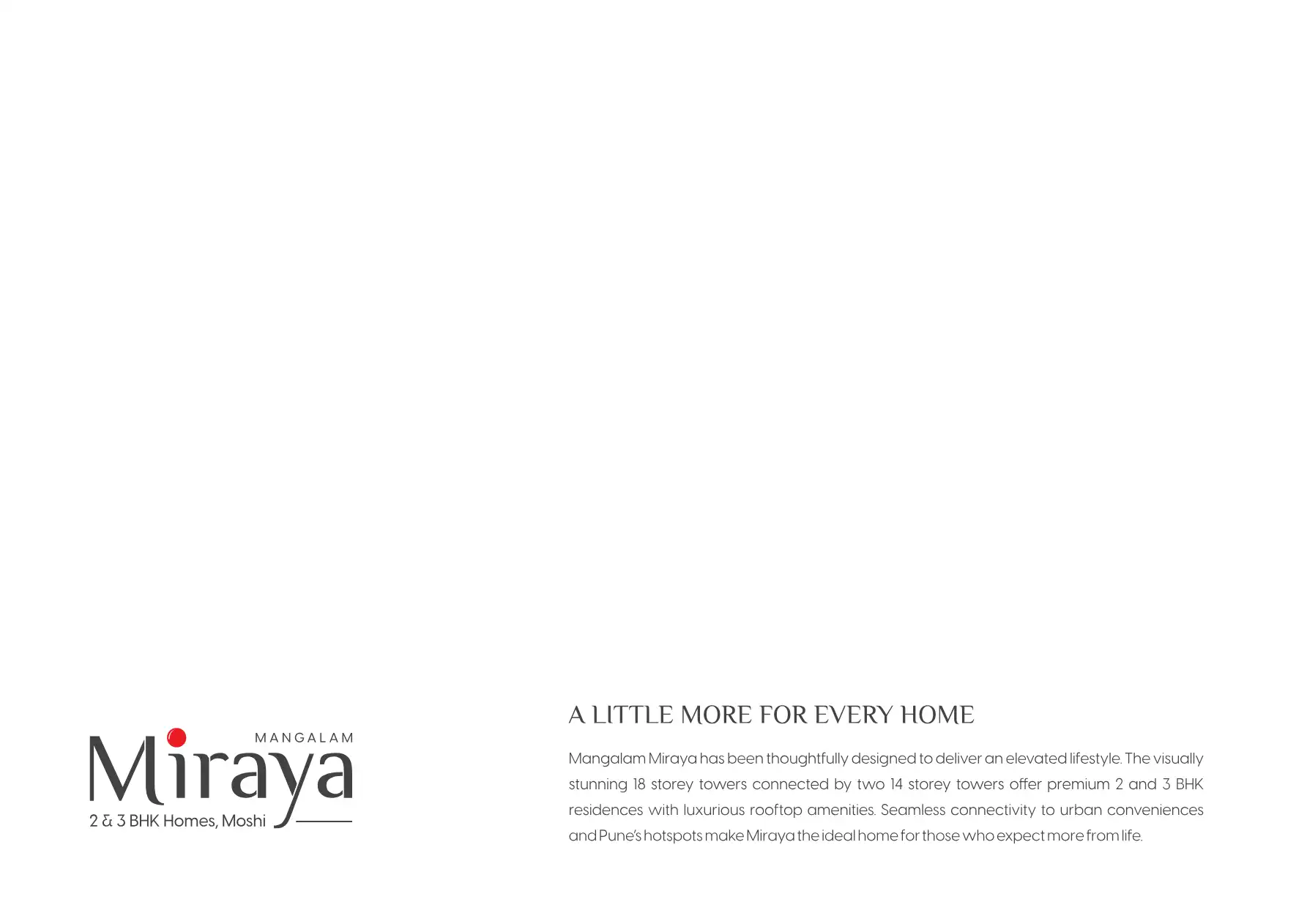 Mangalam Miraya has been thoughtfully designed to deliver an elevated lifestyle. The visually stunning 18 storey towers connected by two 14 storey towers offer premium 2 and 3 BHK residences with luxurious rooftop amenities. Seamless connectivity to ...