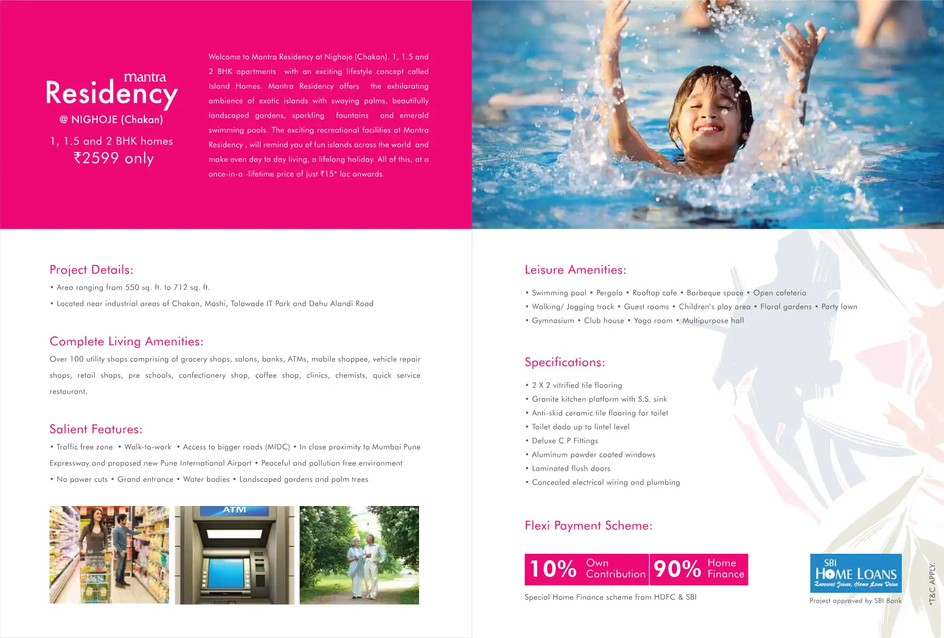 Welcome to Mantra Residency at Nighoje (Chakan). 1, 1.5 and 2 BHK apartments with an exciting lifestyle concept called Island Homes. Mantra Residency offers the exhilarating ambience of exotic islands with swaying palms, beautifully landscaped garden...