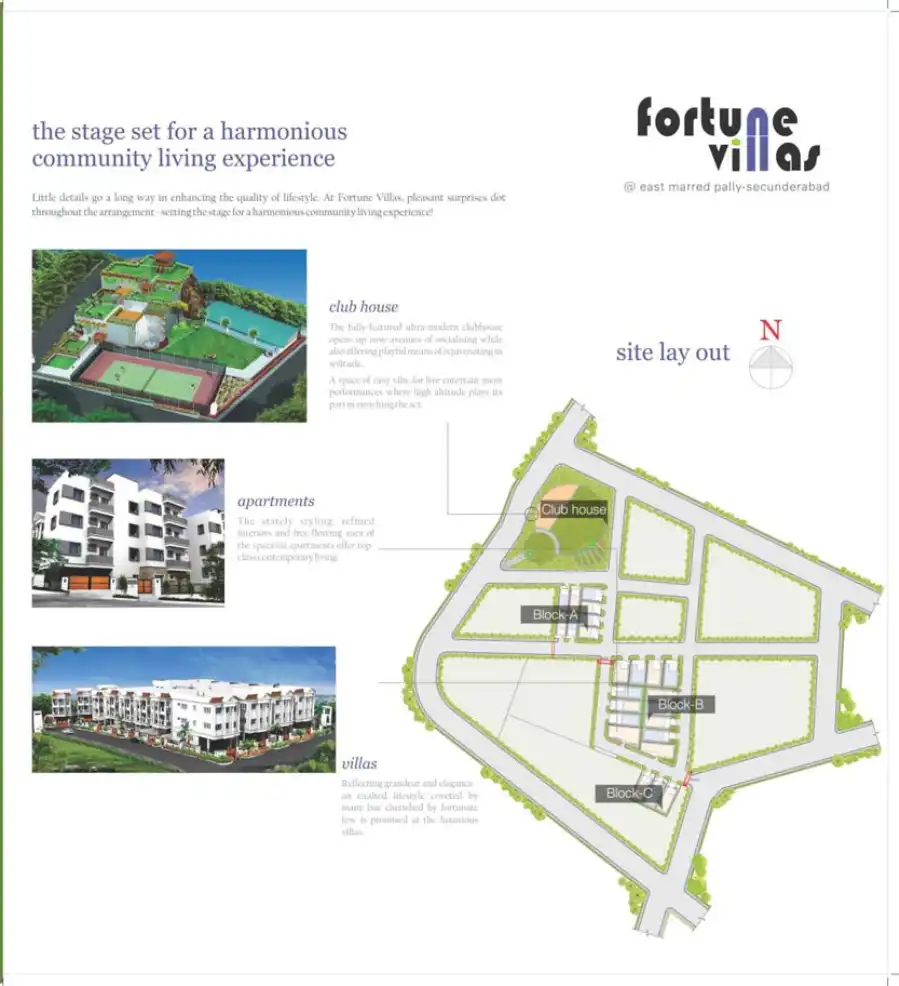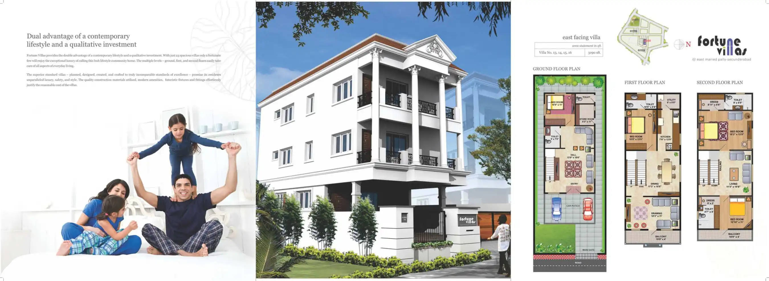 Fortune Villas and Apartments at Mahendra Hills, East Marredpally promises all of the above and lot more. Unsurpassed style in the form of inventive design. Sophisticated finishes that rise majestically out of meticulous planning and superior quality...