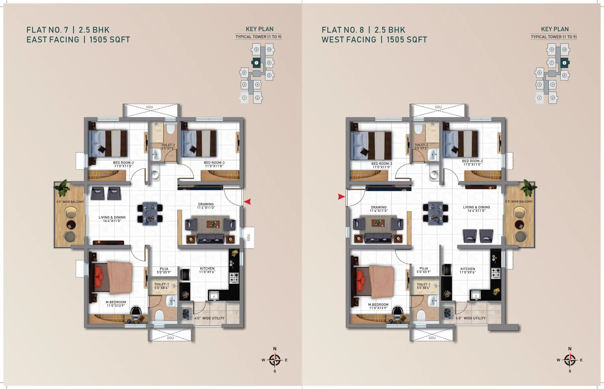 Pocharam primarily offers residential apartments, with configurations typically ranging from 2 BHK to 3 BHK. Projects such as Matsyagiri Homes, Infocity Elite, and Ramky One Orion provide diverse options for both sale and rent, catering to various budget segments and family sizes looking for modern living spaces.