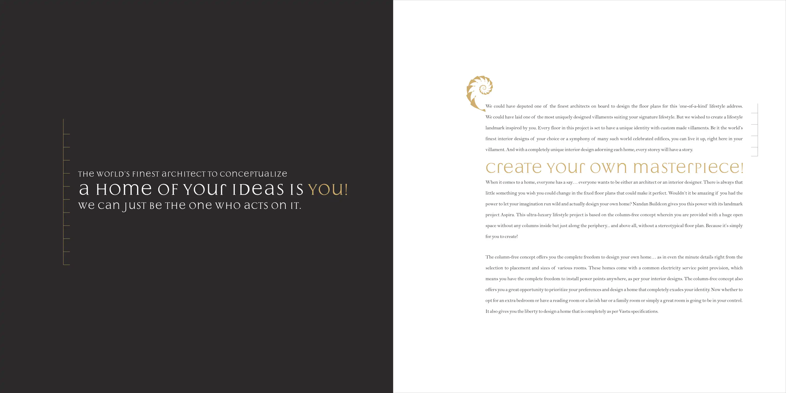 Nandan Aspira is an ultra-luxury lifestyle project based on the column-free concept wherein you are provided with a huge open space without any columns inside but just along the periphery and above all, without a stereotypical floor plan.