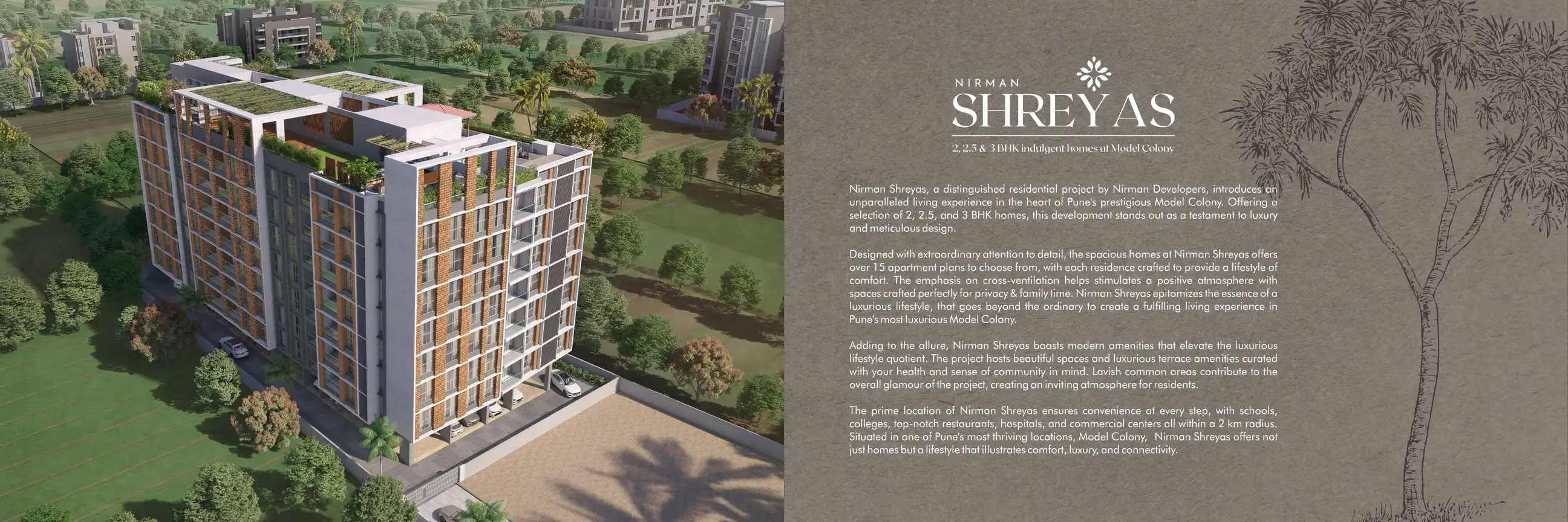 Nirman Shreyas, a distinguished residential project by Nirman Developers, introduces an unparalleled living experience in the heart of Pune's prestigious Model Colony. Offering a selection of 2, 2.5, and 3 BHK homes, this development stands out as a ...