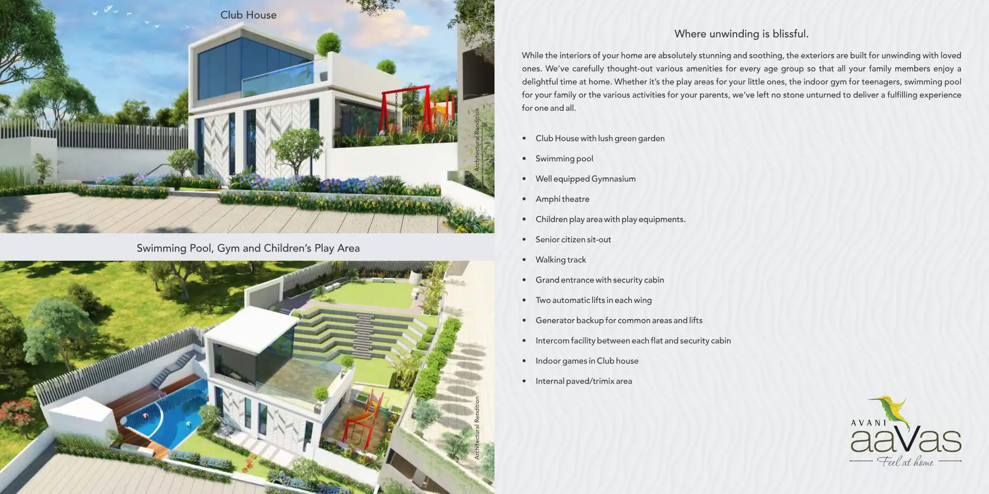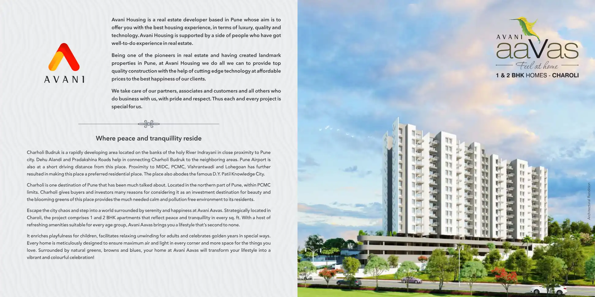 Escape the city chaos and step into a world surrounded by serenity and happiness at Avani Aavas. Strategically located in Charoli, the project comprises 1 and 2 BHK apartments that reflect peace and tranquility in every sq. ft. With a host of refresh...