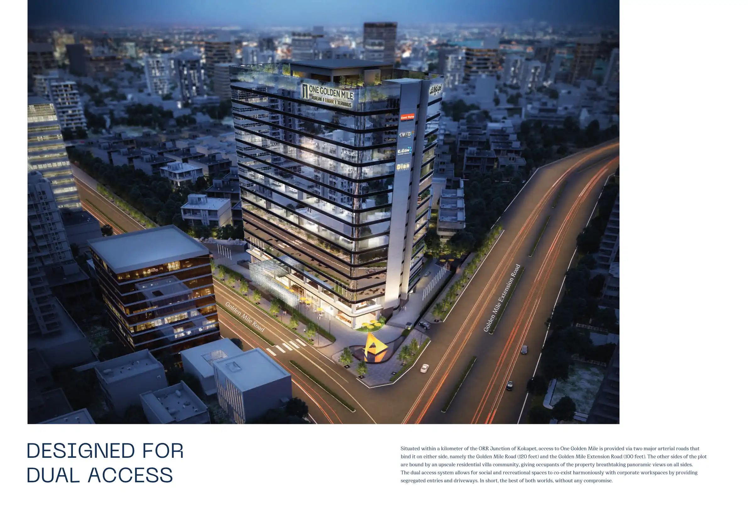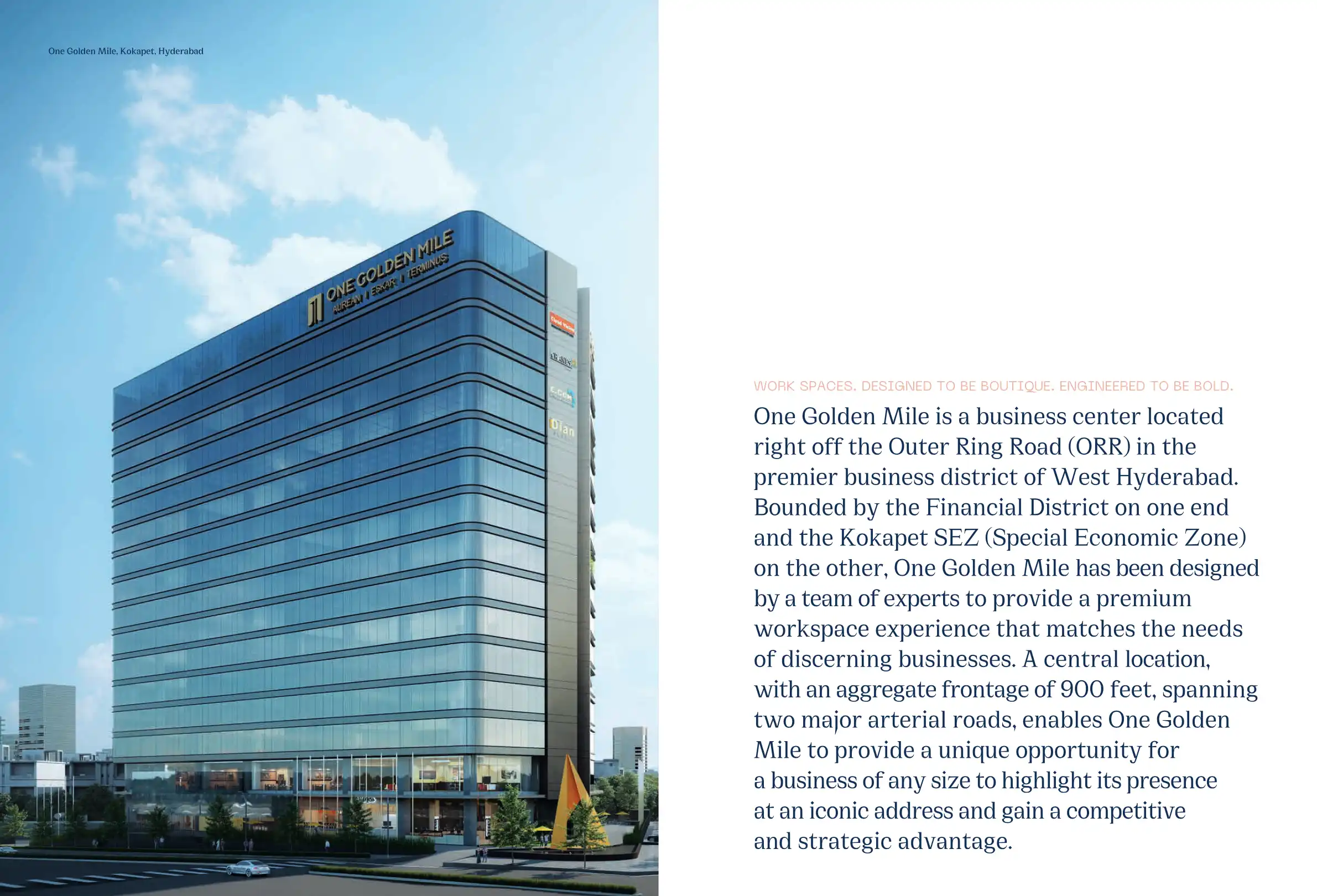 One Golden Mile is a business center located right off the Outer Ring Road (ORR) in the premier business district of West Hyderabad.