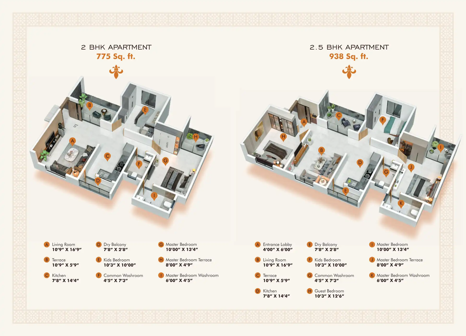 - 775 - 938 sq.ft.