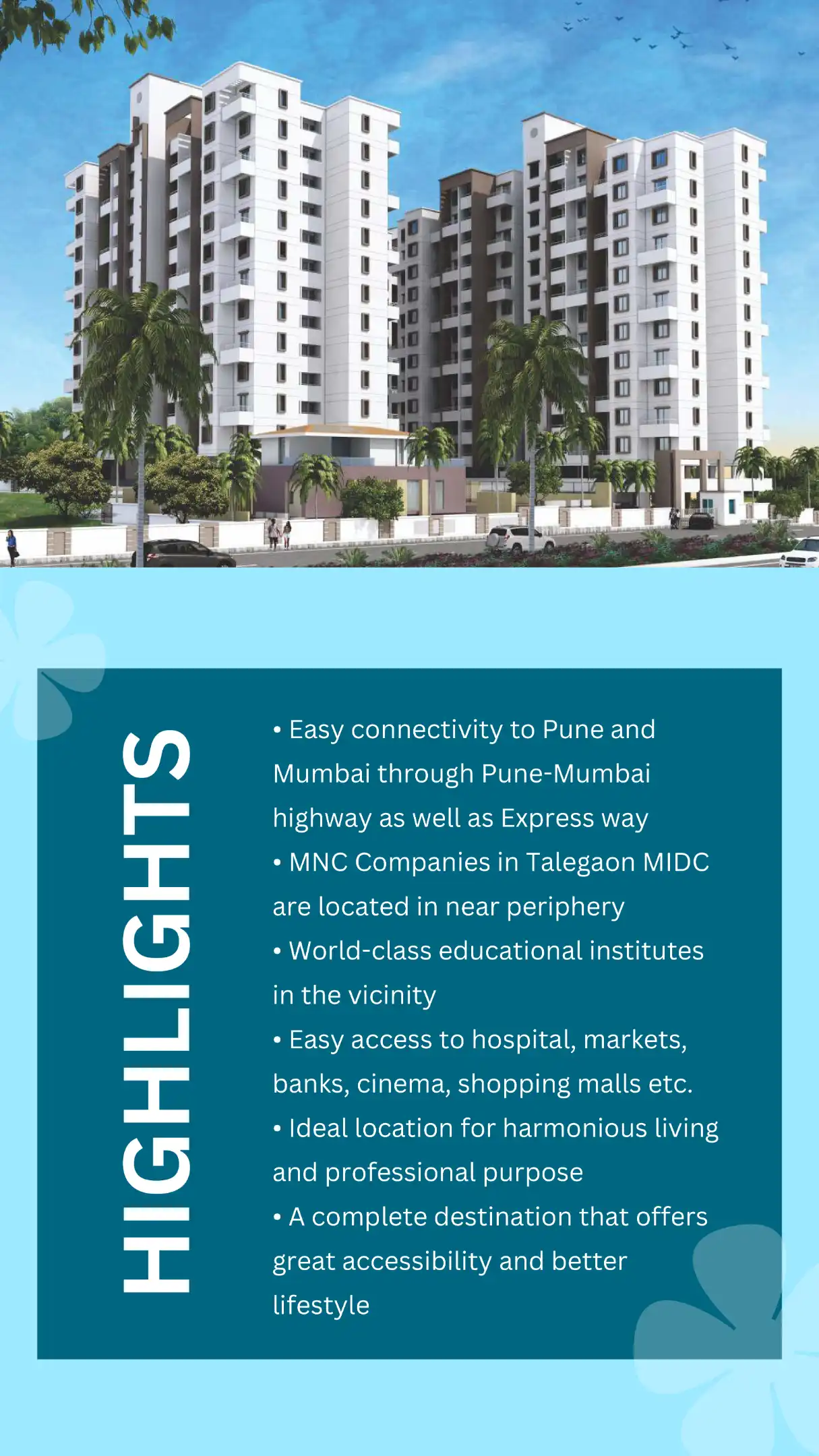 Talegaon is highly attractive for families due to its excellent educational infrastructure, including schools like Eden International School, and colleges such as NCER Pune. The presence of multiple hospitals ensures good healthcare access. Its relatively peaceful environment, coupled with growing amenities and connectivity, provides a conducive setting for family living, offering a blend of convenience and quality of life.