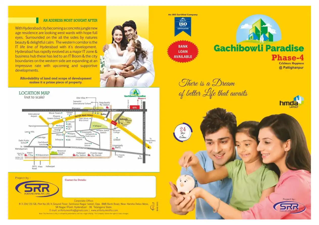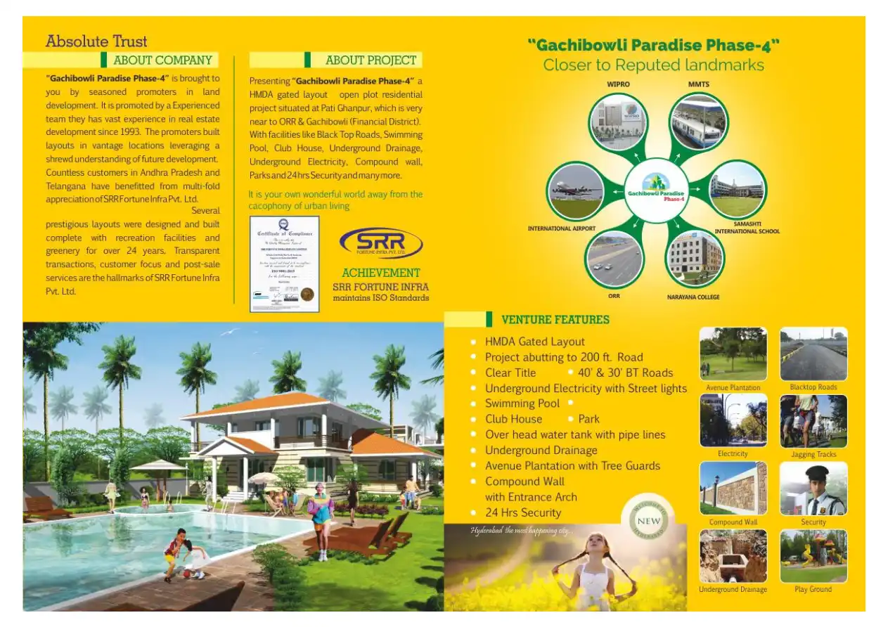 HMDA gated layout open plot residential project situated at Pati Ghanpur, which is very near to ORR & Gachibowli (Financial District). With facilities like Black Top Roads, Swimming Pool, Club House, Underground Drainage, Underground Electricity, Com...