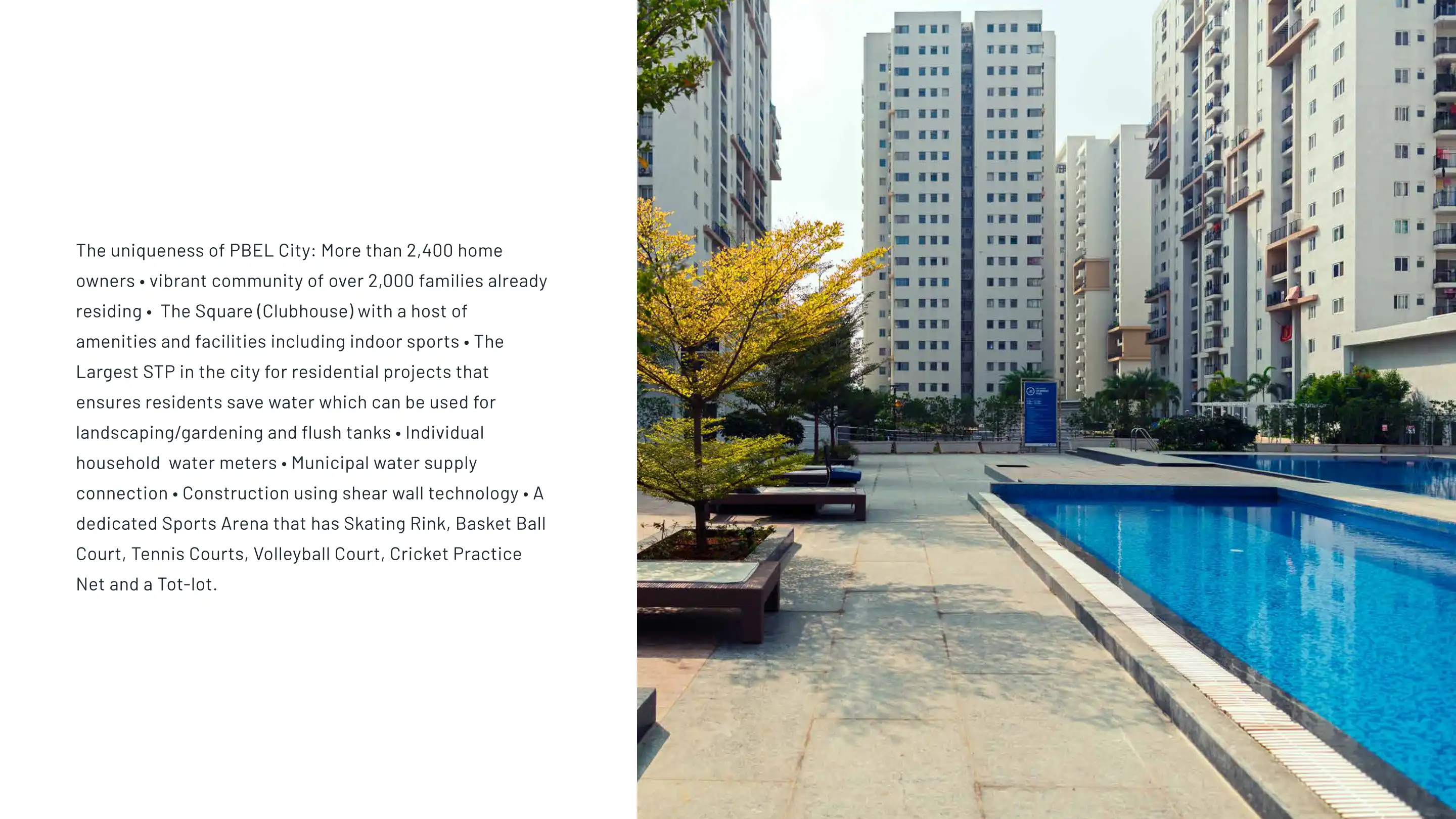 PBEL City is a one-of-a-kind residential gated community created with you in mind. Surrounded by picturesque views and with some of the best technology campuses at close proximity, it is located near the TSPA Junction just off the ORR corridor. Close...