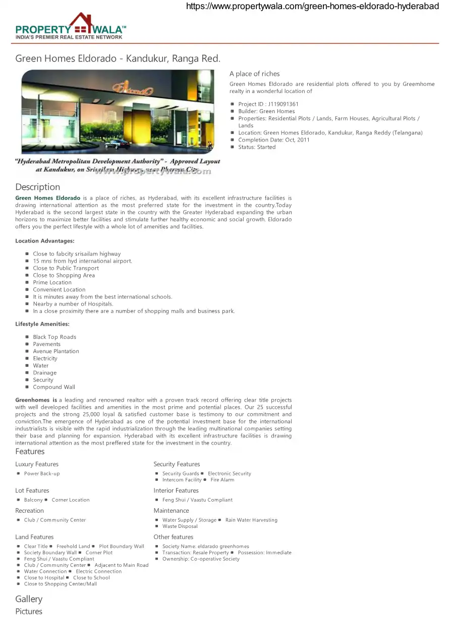 Green Homes Eldorado is a place of riches, as Hyderabad, with its excellent infrastructure facilities is drawing international attention as the most preferred state for the investment in the country. Today Hyderabad is the second largest state in the...