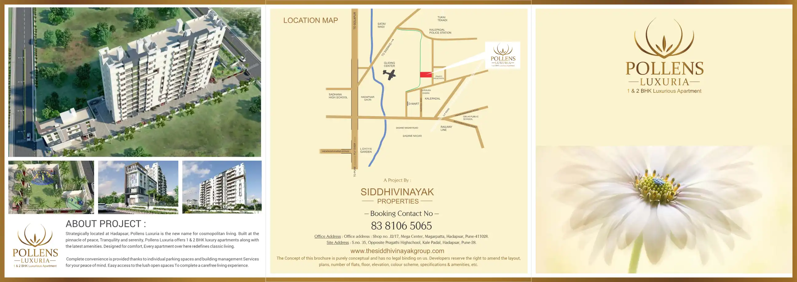 Strategically located at Hadapsar, Pollens Luxuria is the new name for cosmopolitan living. Built at the pinnacle of peace, Tranquility and serenity, Pollens Luxuria offers 1 & 2 BHK luxury apartments along with the latest amenities. Designed for com...
