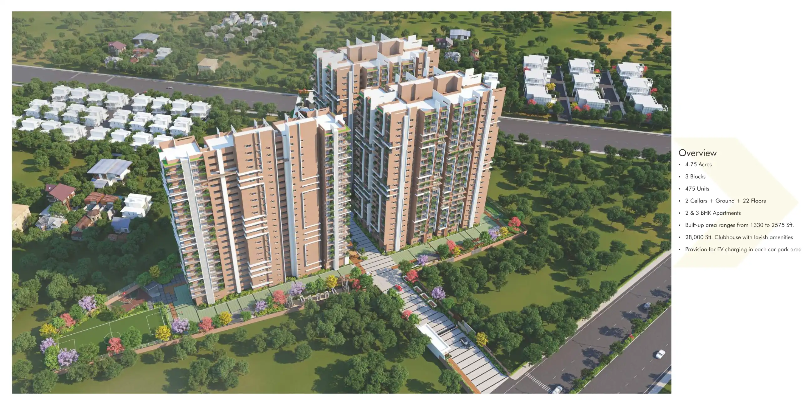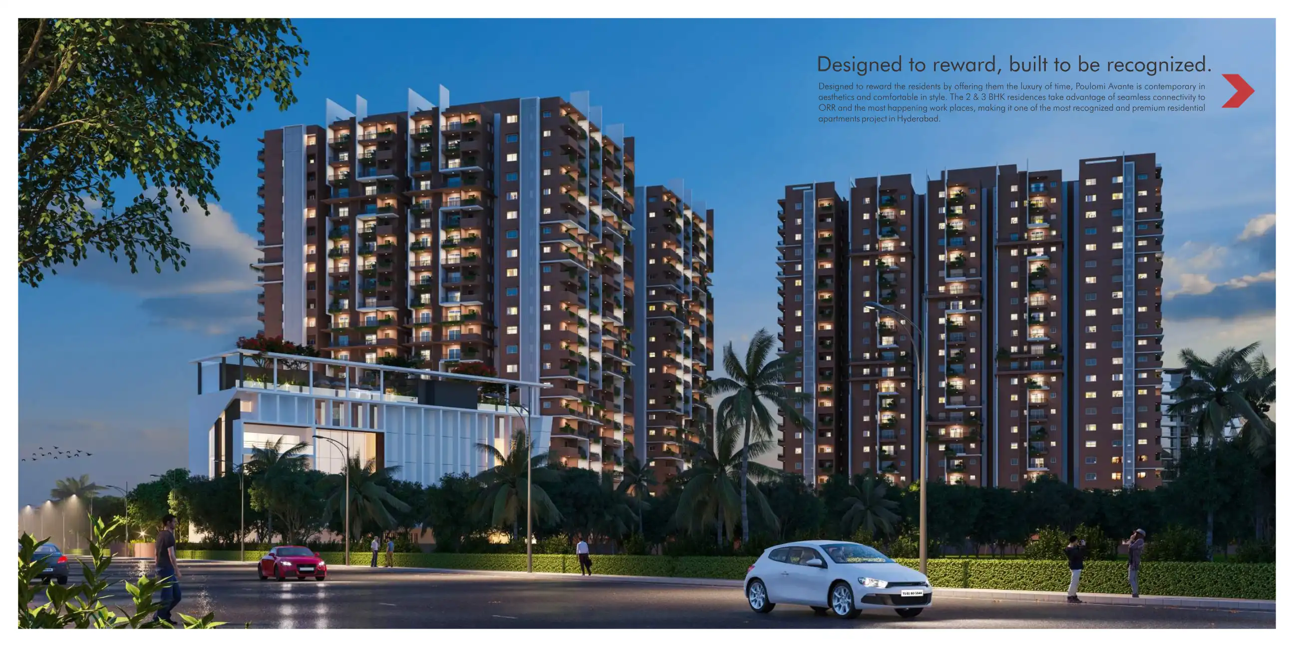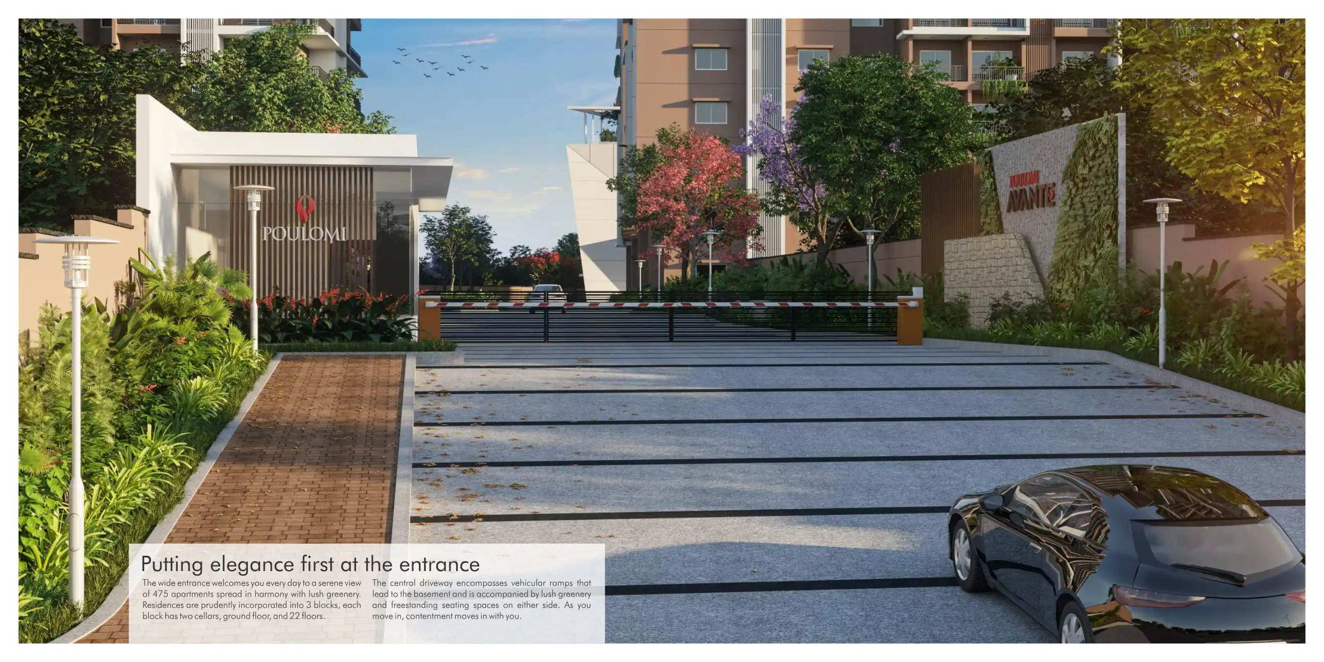 Poulomi Avante is a gated community of premium residential apartments strategically located in Kokapet, just 5 mins drive from Gachibowli IT hub and Financial District.