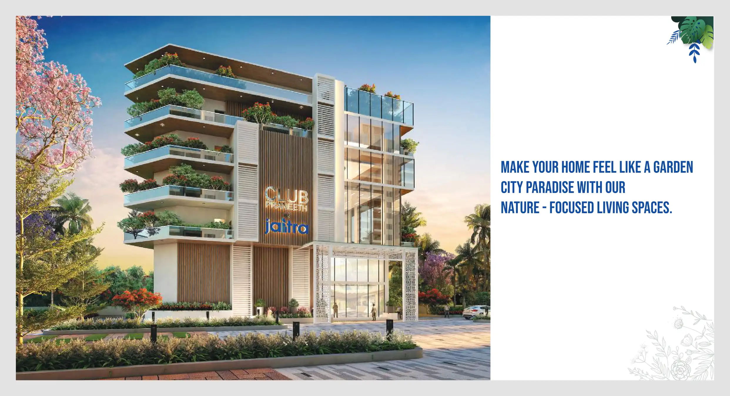 Indulge in luxury lifestyle at Jaitra's expansive, well-groomed nature-themed homes. The creative idea behind Jaitra is all about designing homes that bring you closer to greener pastures while being in the heart of the city. Jaitra High Rise Apartme...