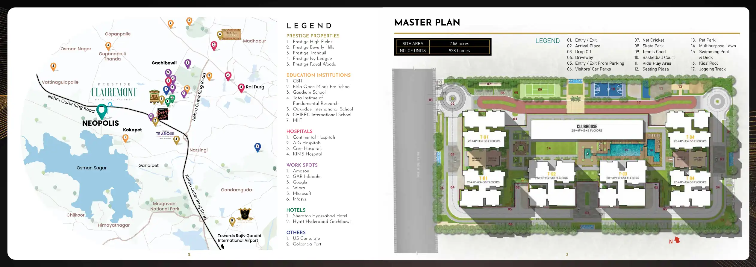 Prestige Clairemont is set to become the newest landmark in NEOPOLIS layout at Kokapet, developed by the Prestige Group. This apartment community is a perfect place for those who seek a lifestyle of opulence, a beautifully planned enclave with a comb...