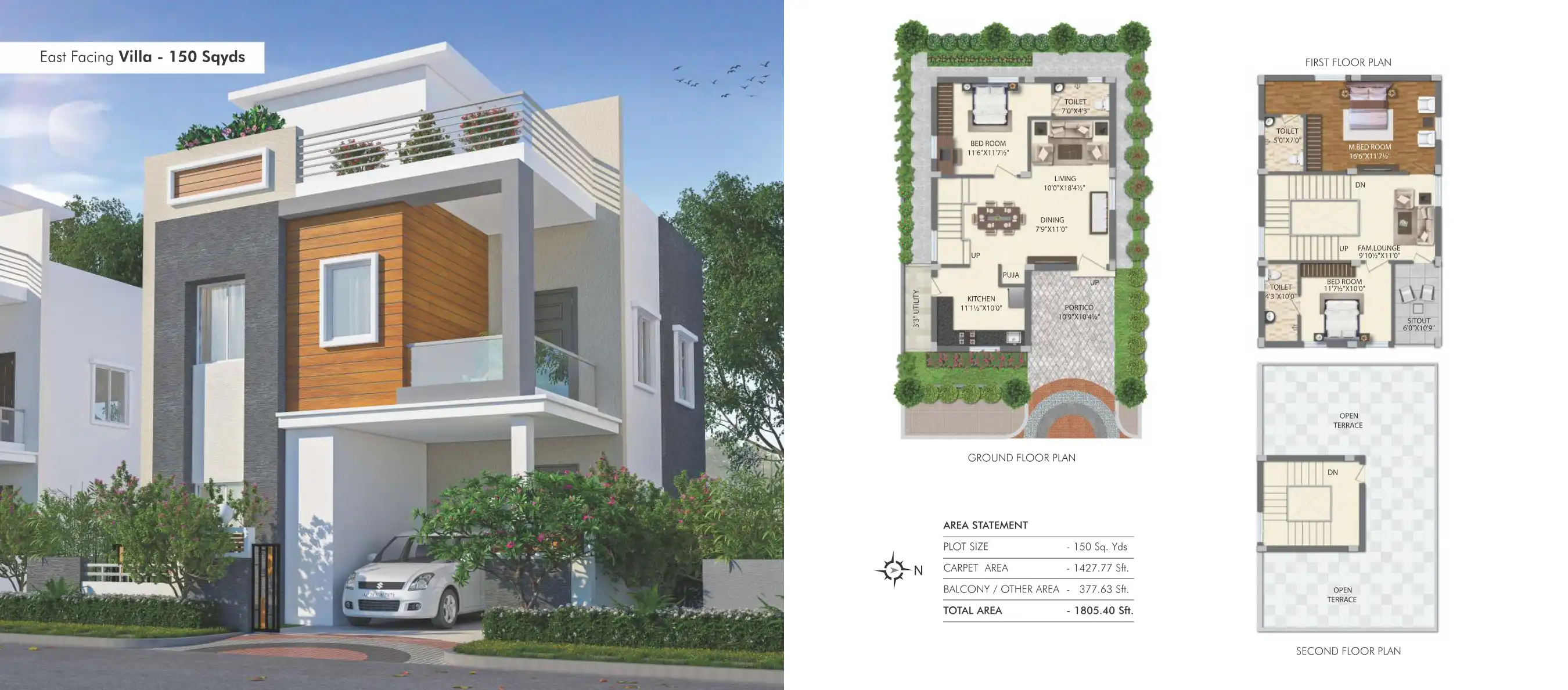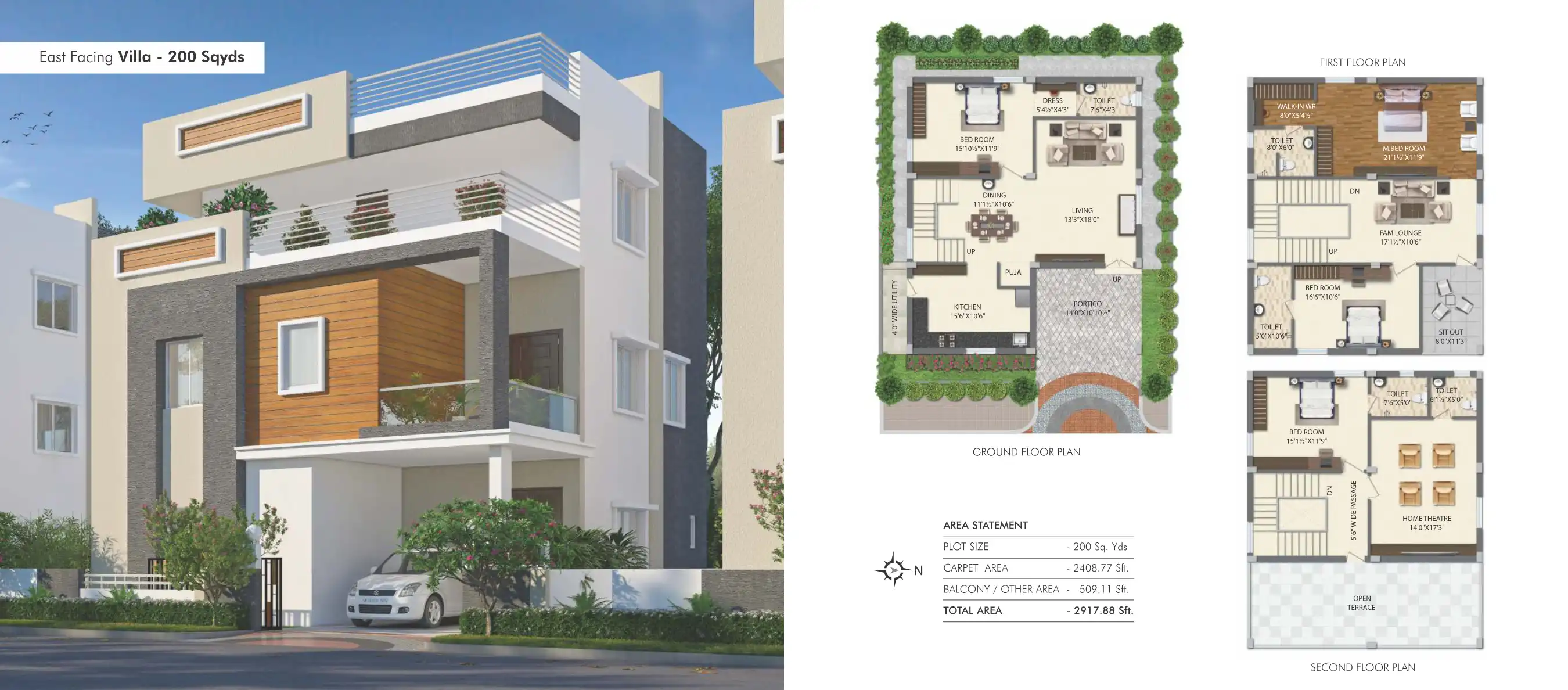 Located close to the ORR in 4 acres of prime property in Bachupally. The 61 east and west facing villas on offer are available in duplex and triplex configurations and more importantly in right sizes without compromising on spaces or specifications.