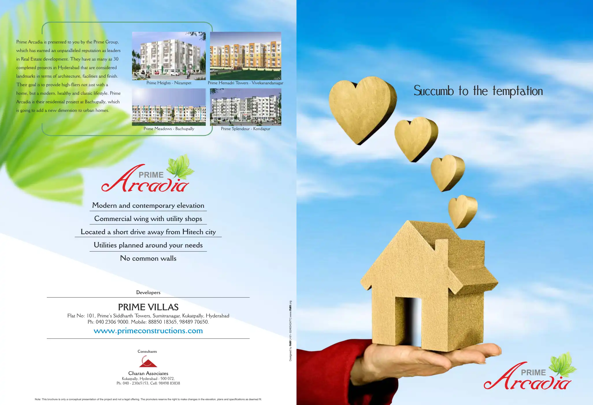 Prime Arcadia is presented to you by the Prime Group, which has earned an unparalleled reputation as leaders in Real Estate development. They have as many as 30 completed projects in Hyderabad that are considered landmarks in terms of architecture, f...